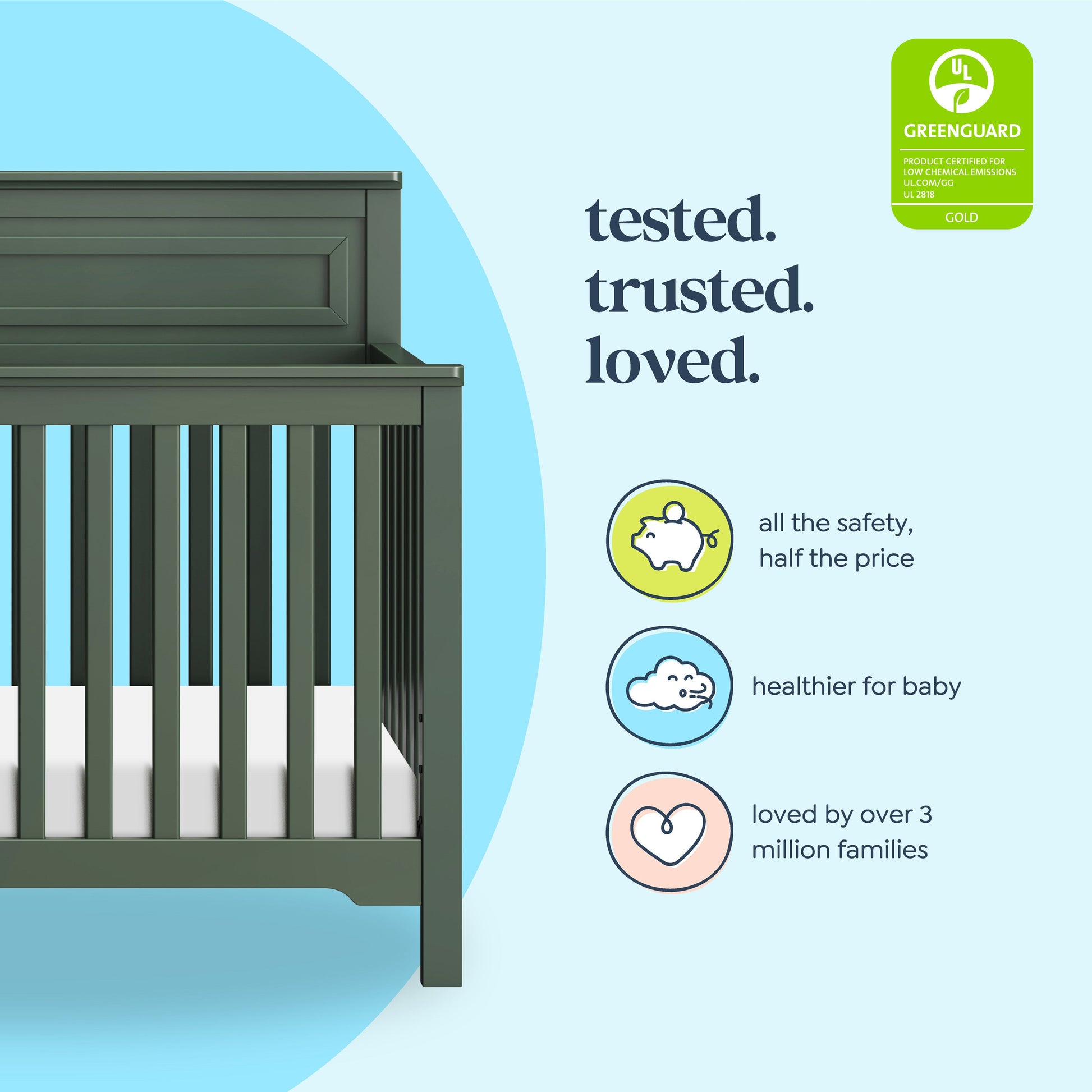 Our bestselling Autumn 4-in-1 Crib is designed to fit any nursery from traditional to contemporary with a high headboard, sturdy slats and refined molding. Combining traditional appeal with timeless clean lines, this GREENGUARD Gold Certified crib is constructed of New Zealand pine wood. Offers easy conversion to a toddler bed, daybed and full-sized bed.