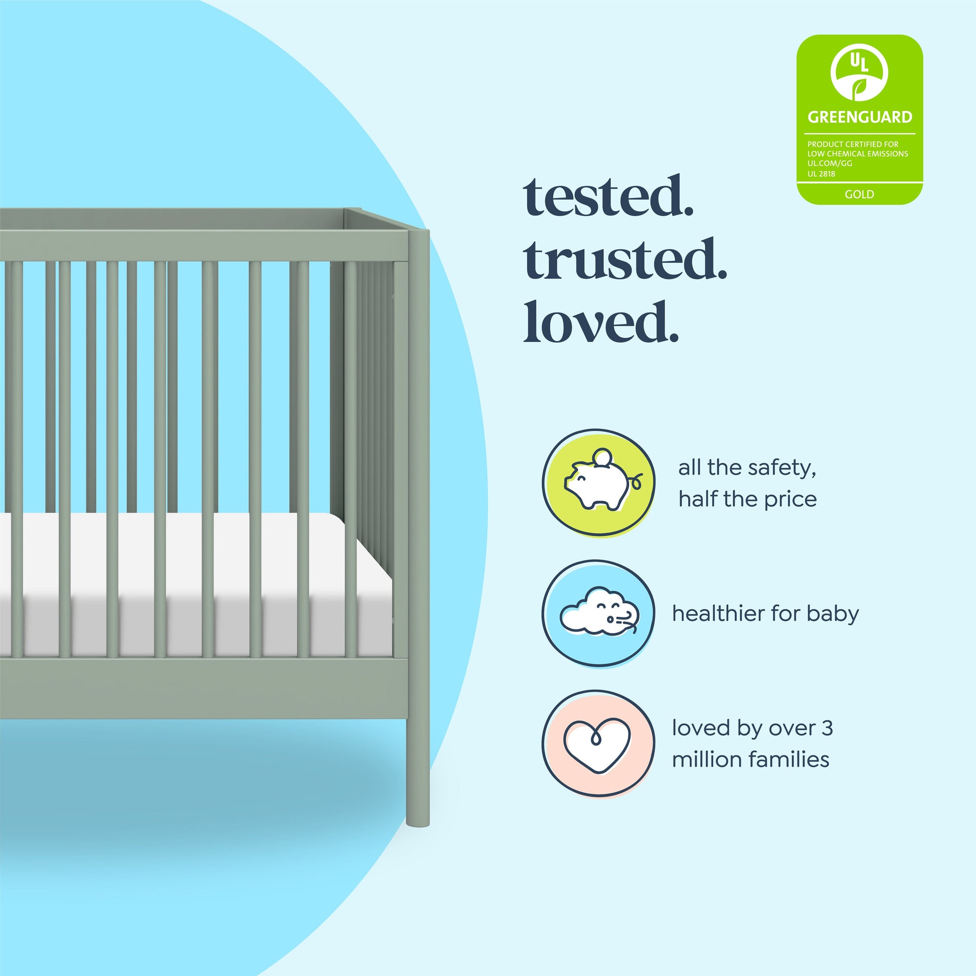 The simple yet versatile design of the Birdie 3-in-1 Convertible Crib adds style to both modern and classic nurseries. Built to seamlessly transition from newborn to toddler, the crib has four different mattress heights and easily converts to a toddler bed and daybed.
