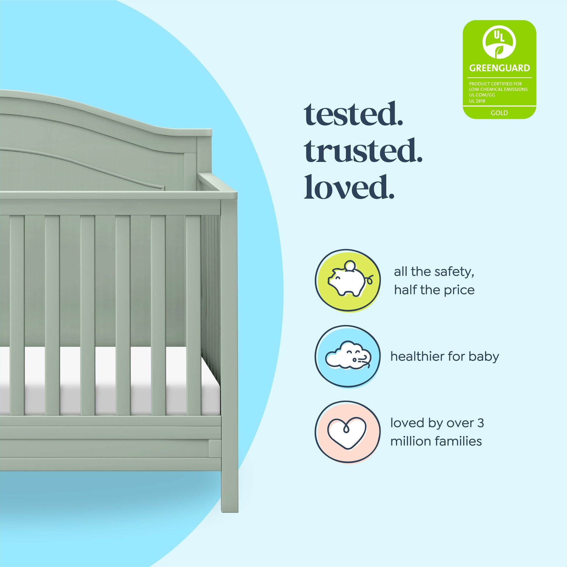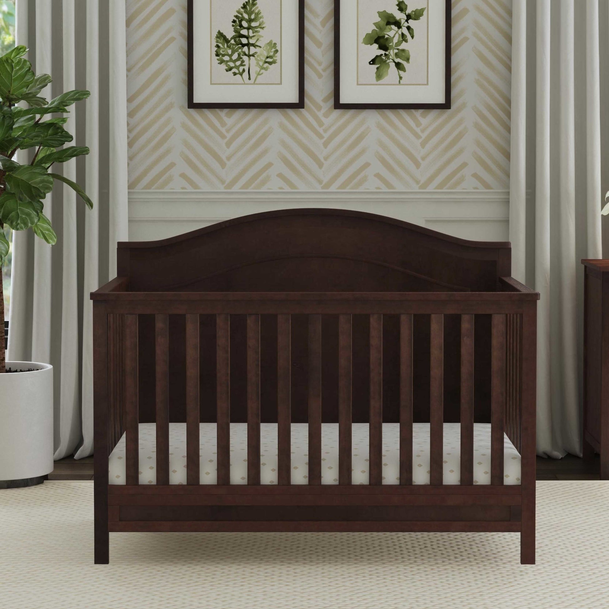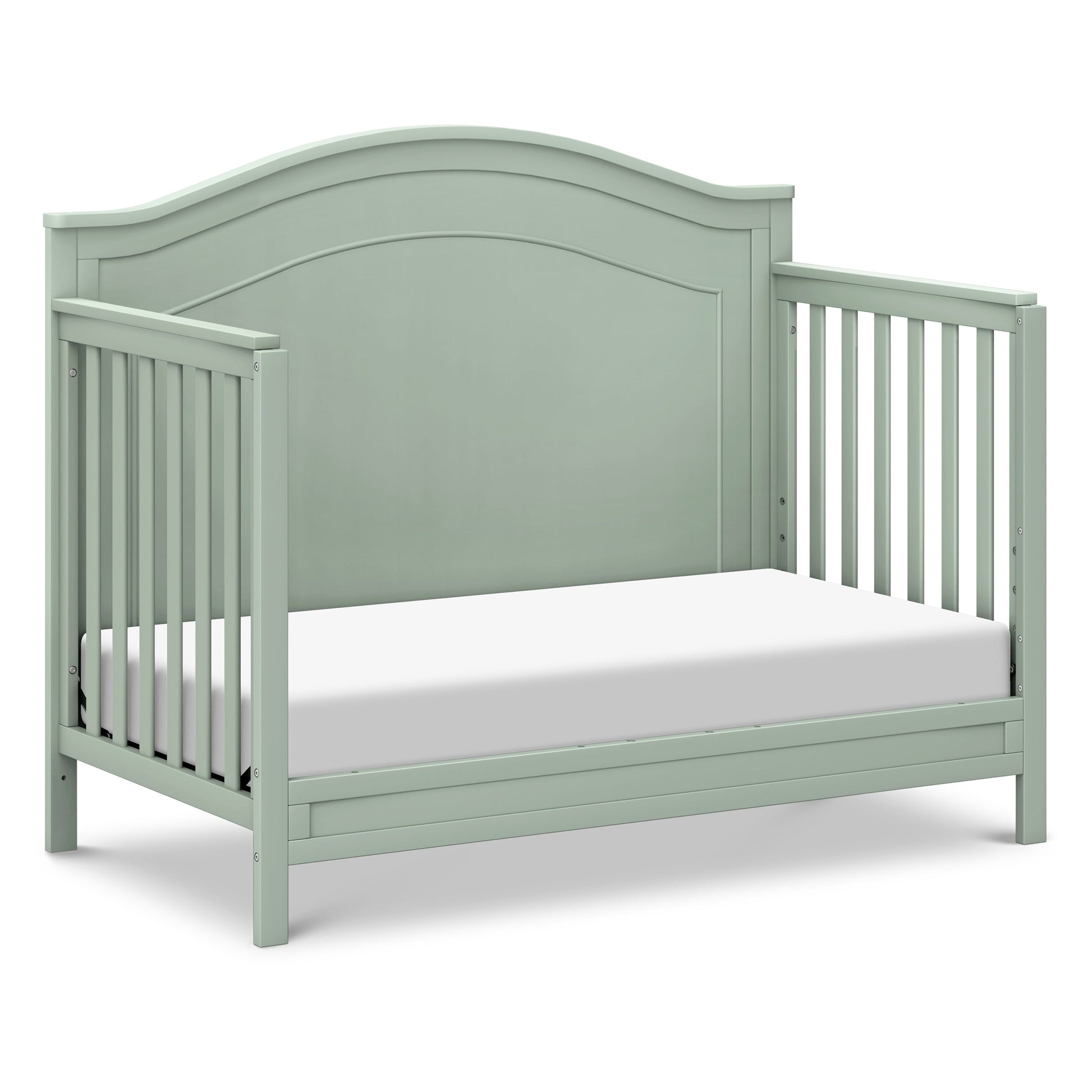 The polished Charlie 4-in-1 Crib features a graceful arched headboard with delicately carved molding and slim feet. The crib easily converts from crib to toddler bed, daybed and full-size bed.