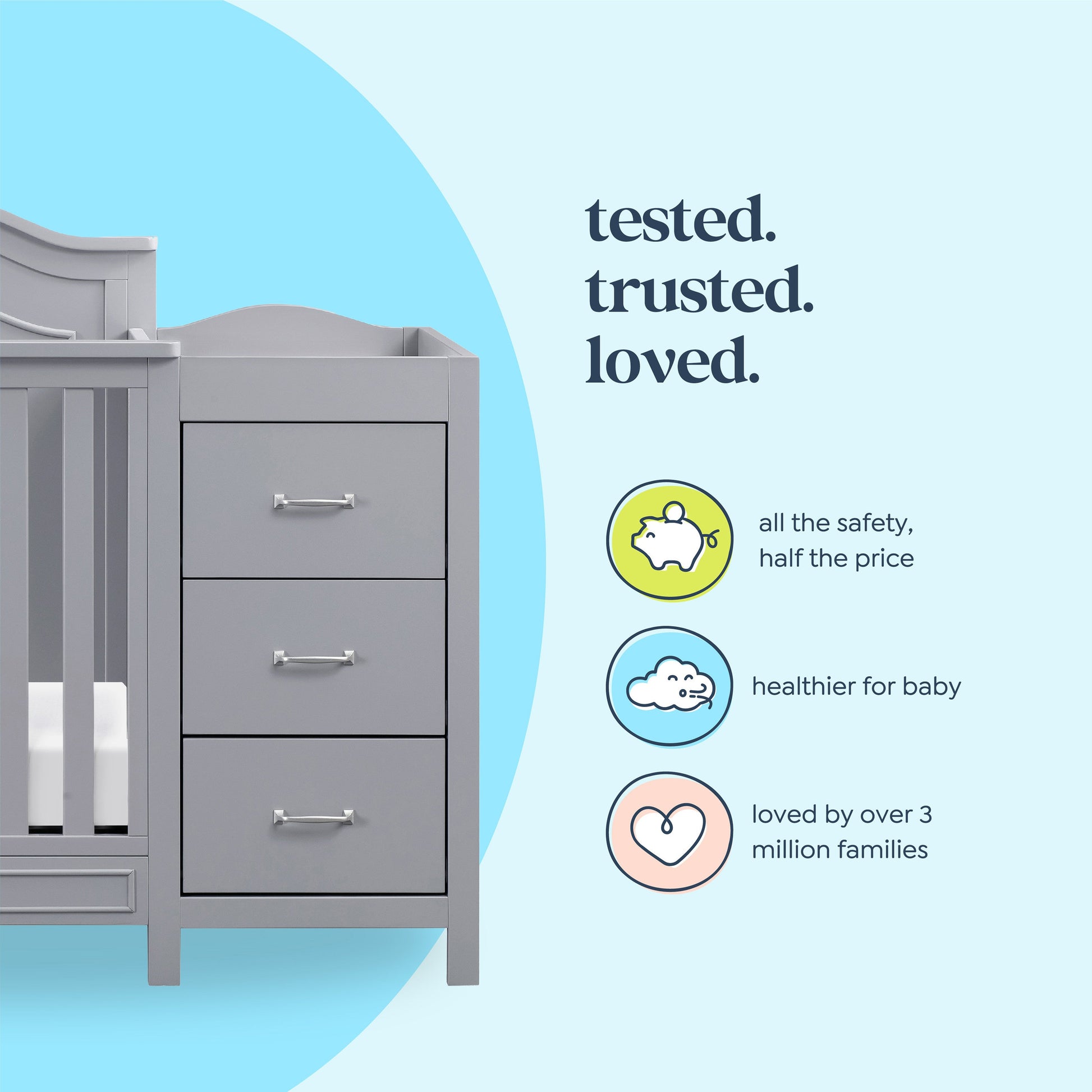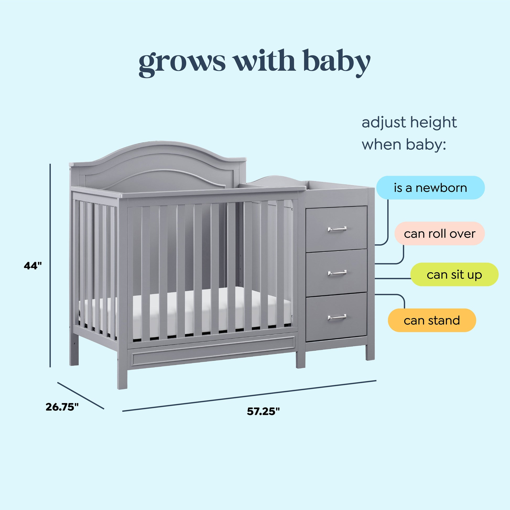 The Charlie 4-in-1 Convertible Mini Crib & Changer is a beautiful, comprehensive solution for any stylish nursery. Its compact size helps maximize smaller spaces, so that your baby has more room to play and grow! Beyond the nursery years, this crib converts to a mini toddler bed, day bed, and twin-size bed.
