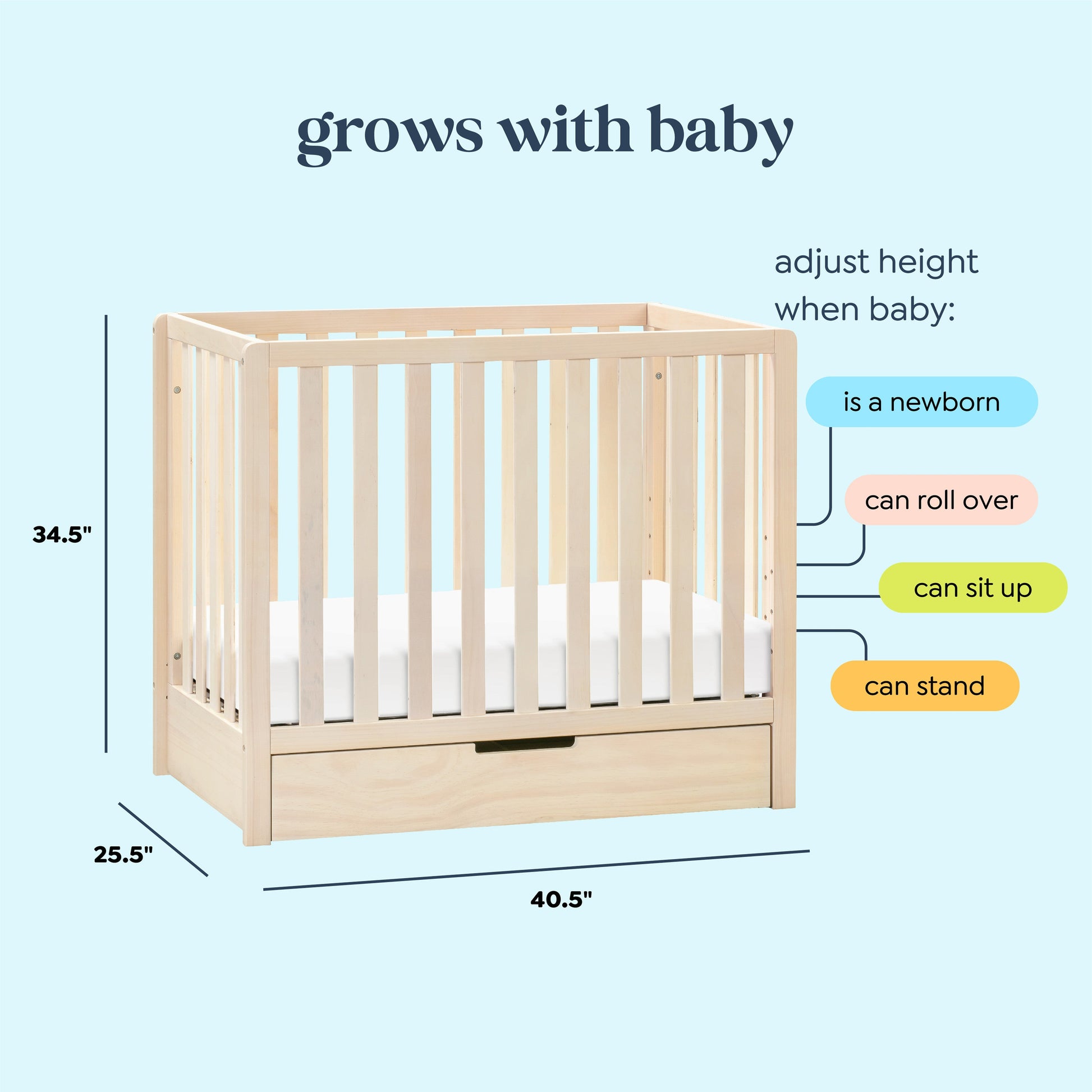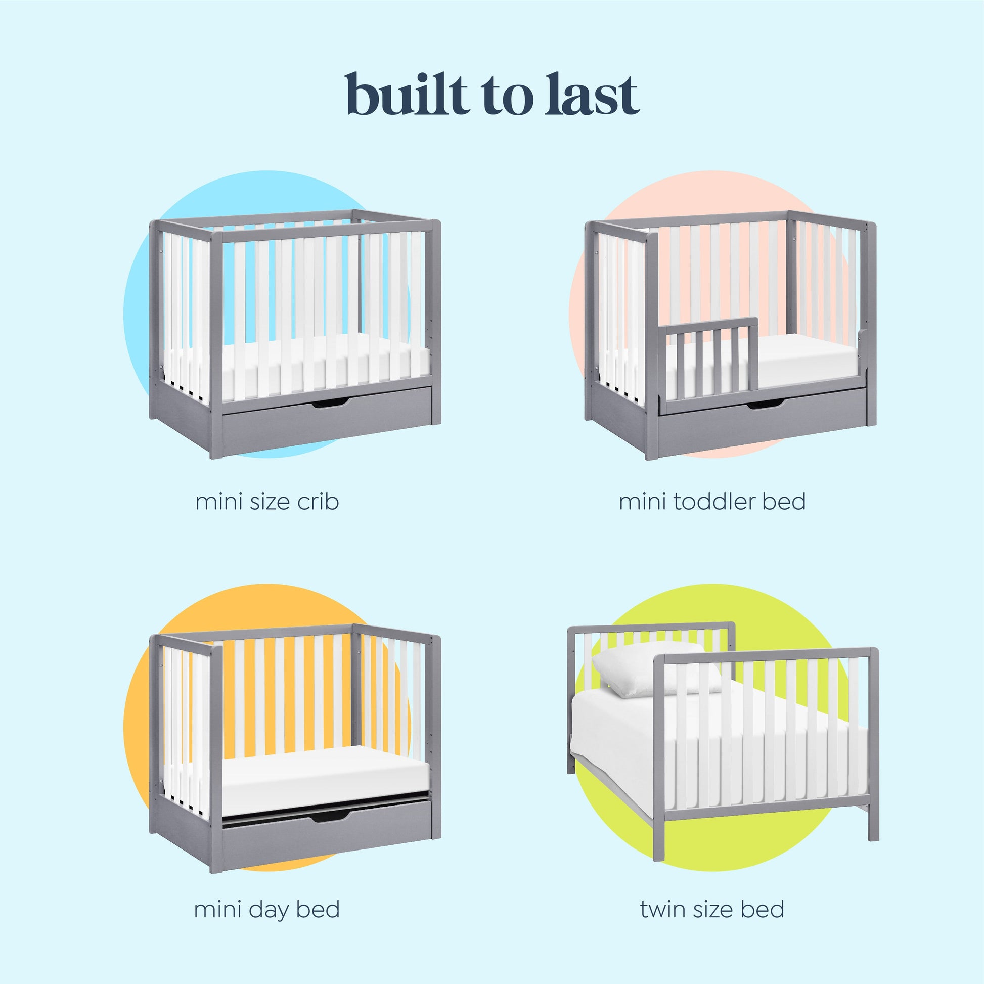 The Colby 4-in-1 Convertible Mini Crib with Trundle is a more compact, space-efficient version of the customers’ favorite Colby 4-in-1 Convertible Crib with Trundle. It features clean lines and a spacious, built-in trundle for a beautiful and practical nursery. The Colby Mini Crib grows with your child with its four different mattress height positions and converts into a mini toddler bed, daybed, and twin-size bed to grow with your child (conversion kits sold separately).