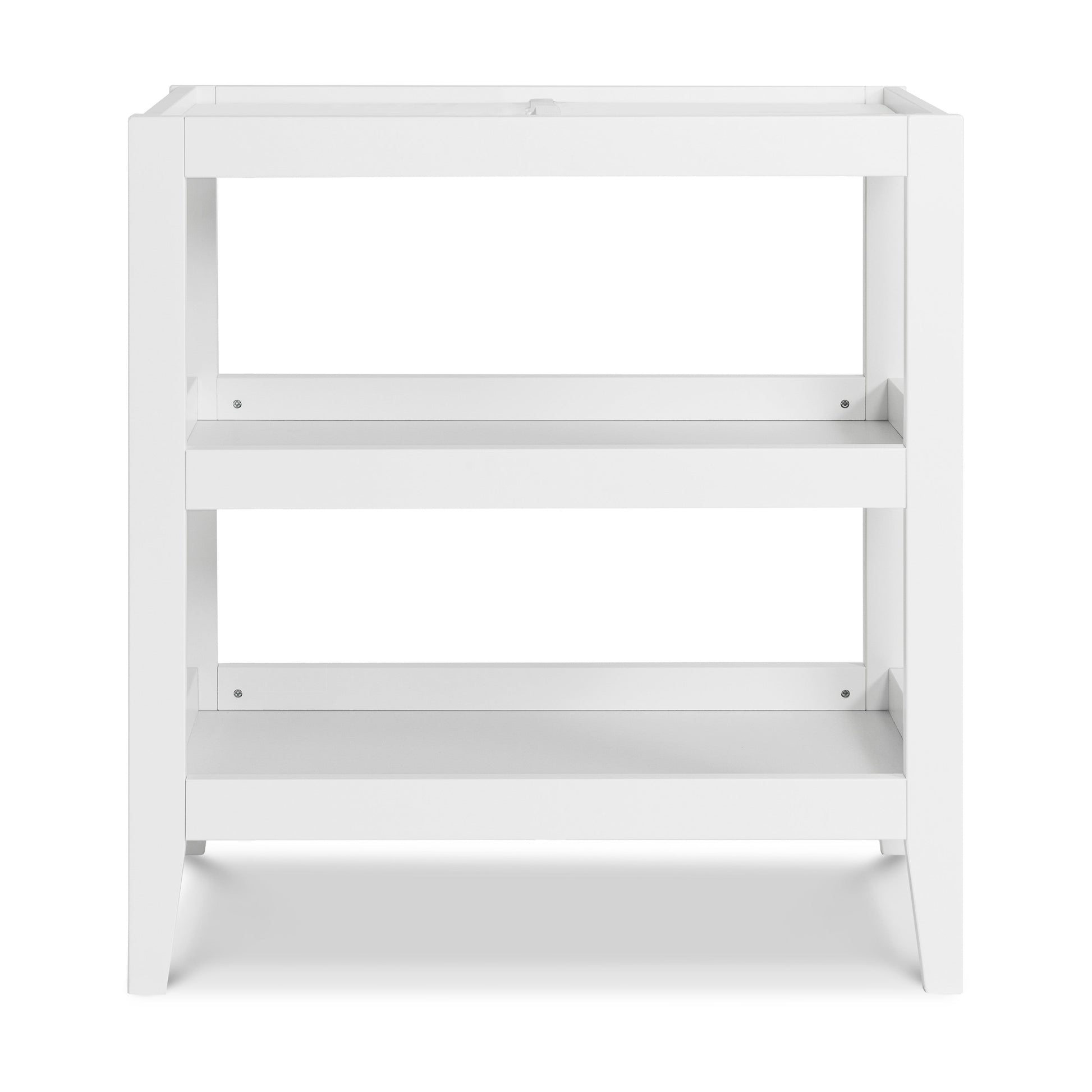 The Colby Changing Table features a universal design with clean lines that will suit any style of nursery decor. Crafted from non-toxic materials, its solid construction ensures baby can rest safely and comfortably during changings. The Colby Changing Table's versatile design includes a built-in tray top to fit a changing pad and two spacious shelves providing storage for all of baby's necessities. Coordinates with the Colby Crib, Colby 3-Drawer Dresser and Colby 6-Drawer Double Dresser.