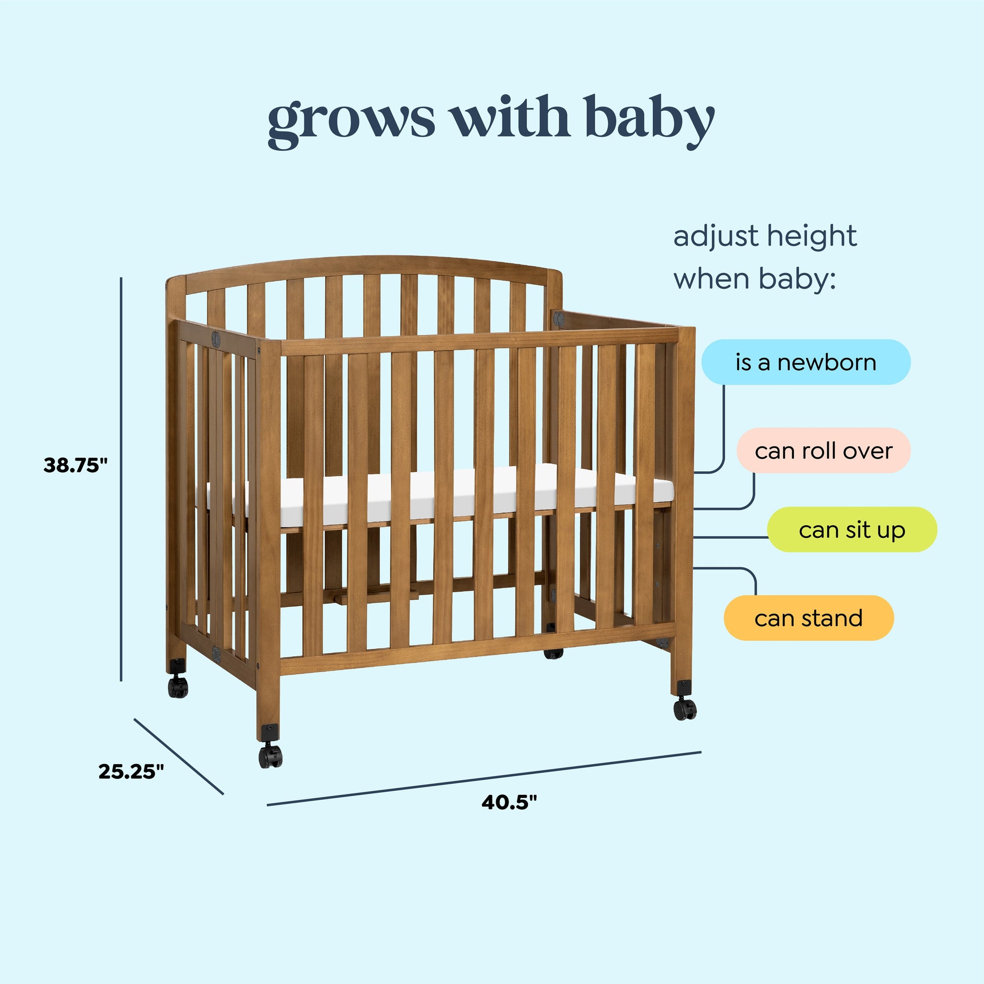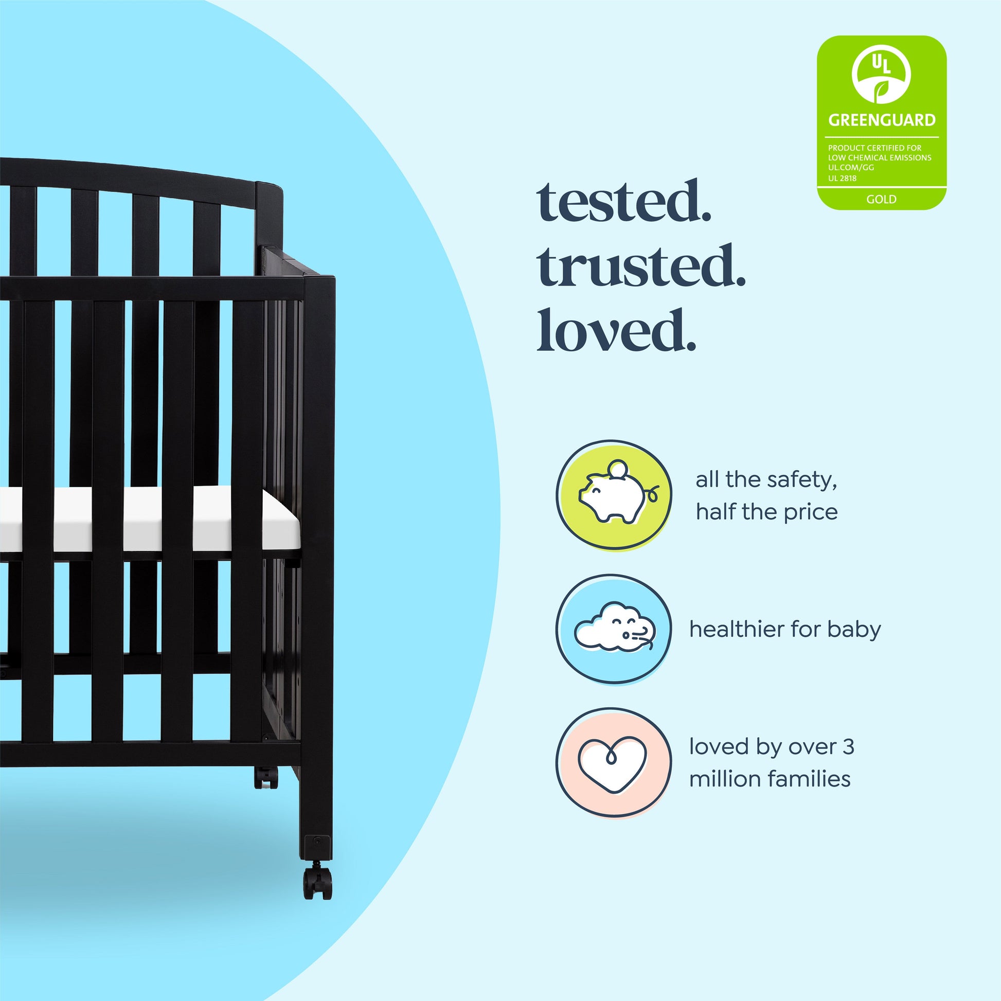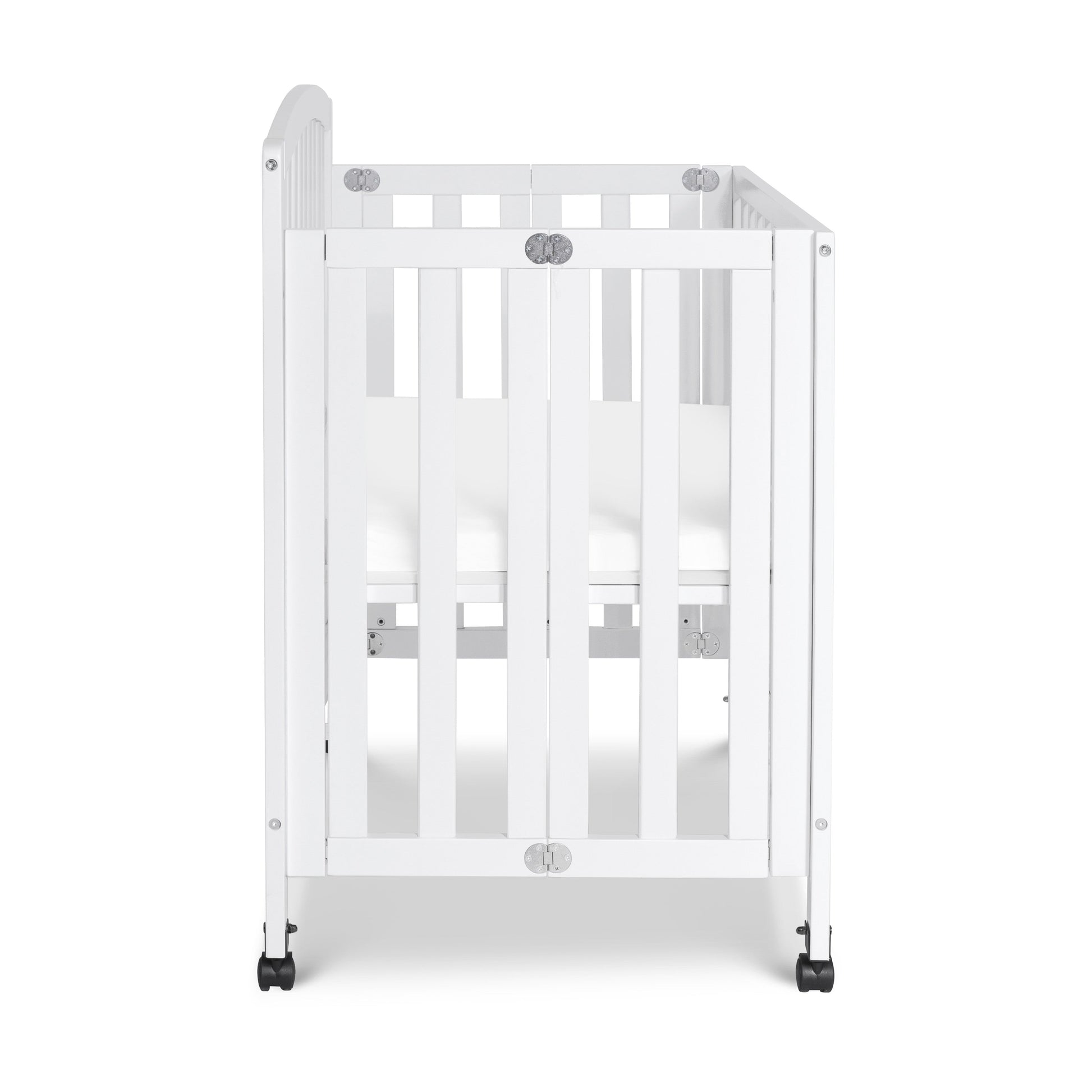 The Dylan Folding Portable Mini Crib is the perfect fit for urban living or to leave at grandparents' home. Its smaller size and rolling wheels allow you to move the crib freely throughout the home. The Dylan’s folding functionality allows you to easily store the crib when not in use or to take with you when you travel. This mini crib is both durable and lightweight and converts to a twin bed to grow with your baby beyond the nursery years.