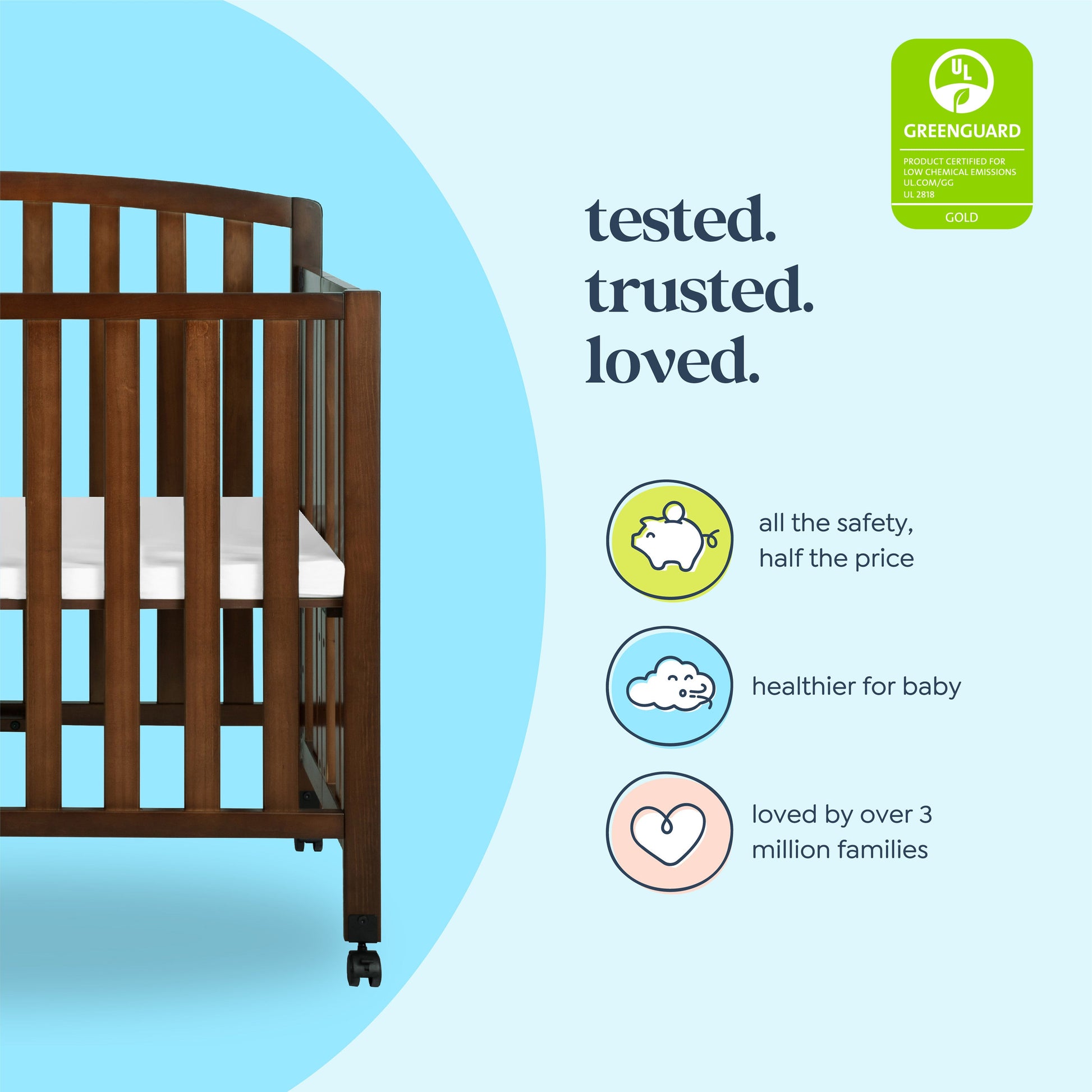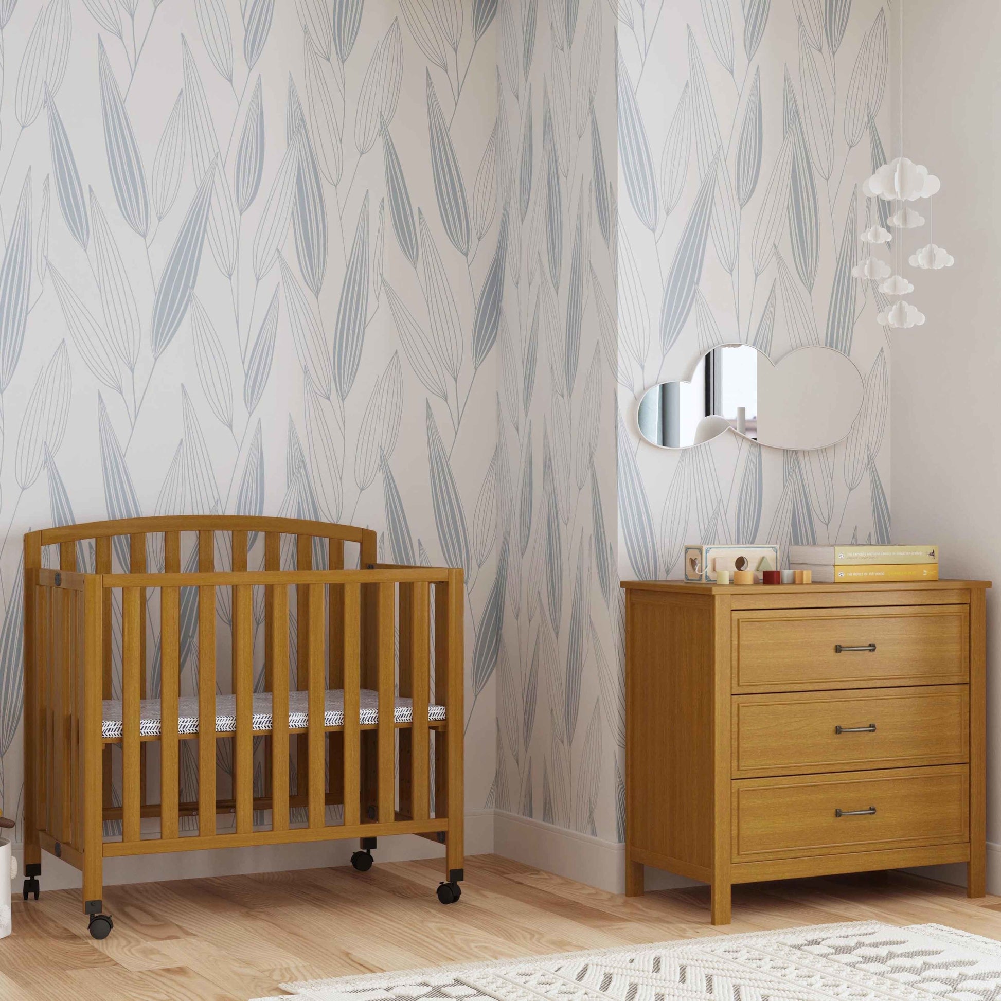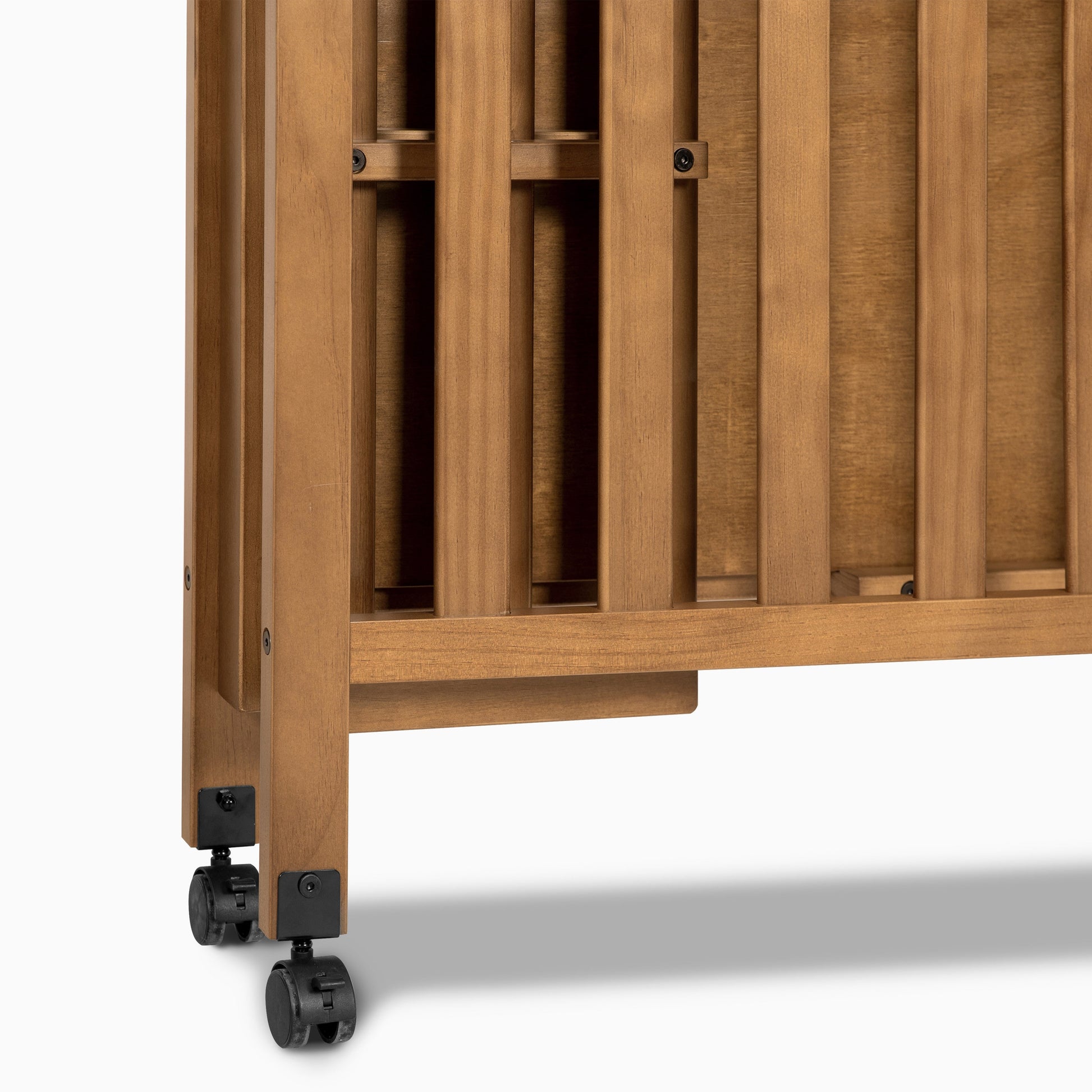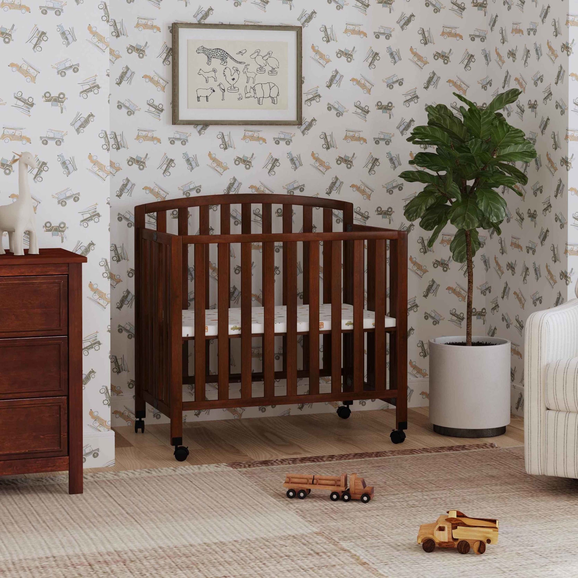 The Dylan Folding Portable Mini Crib is the perfect fit for urban living or to leave at grandparents' home. Its smaller size and rolling wheels allow you to move the crib freely throughout the home. The Dylan’s folding functionality allows you to easily store the crib when not in use or to take with you when you travel. This mini crib is both durable and lightweight and converts to a twin bed to grow with your baby beyond the nursery years.
