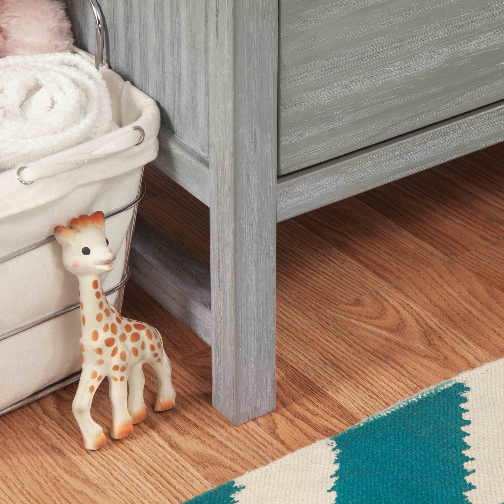 The Fairway 3-Drawer Dresser adds functional farmhouse style into the nursery space. With its spacious three drawers finished in a rustic scratch finish, clean slim feet, and classic cup drawer pulls, the Fairway is a stylish and transitional piece for the home. Pair with the Fairway 6-Drawer Double Dresser.