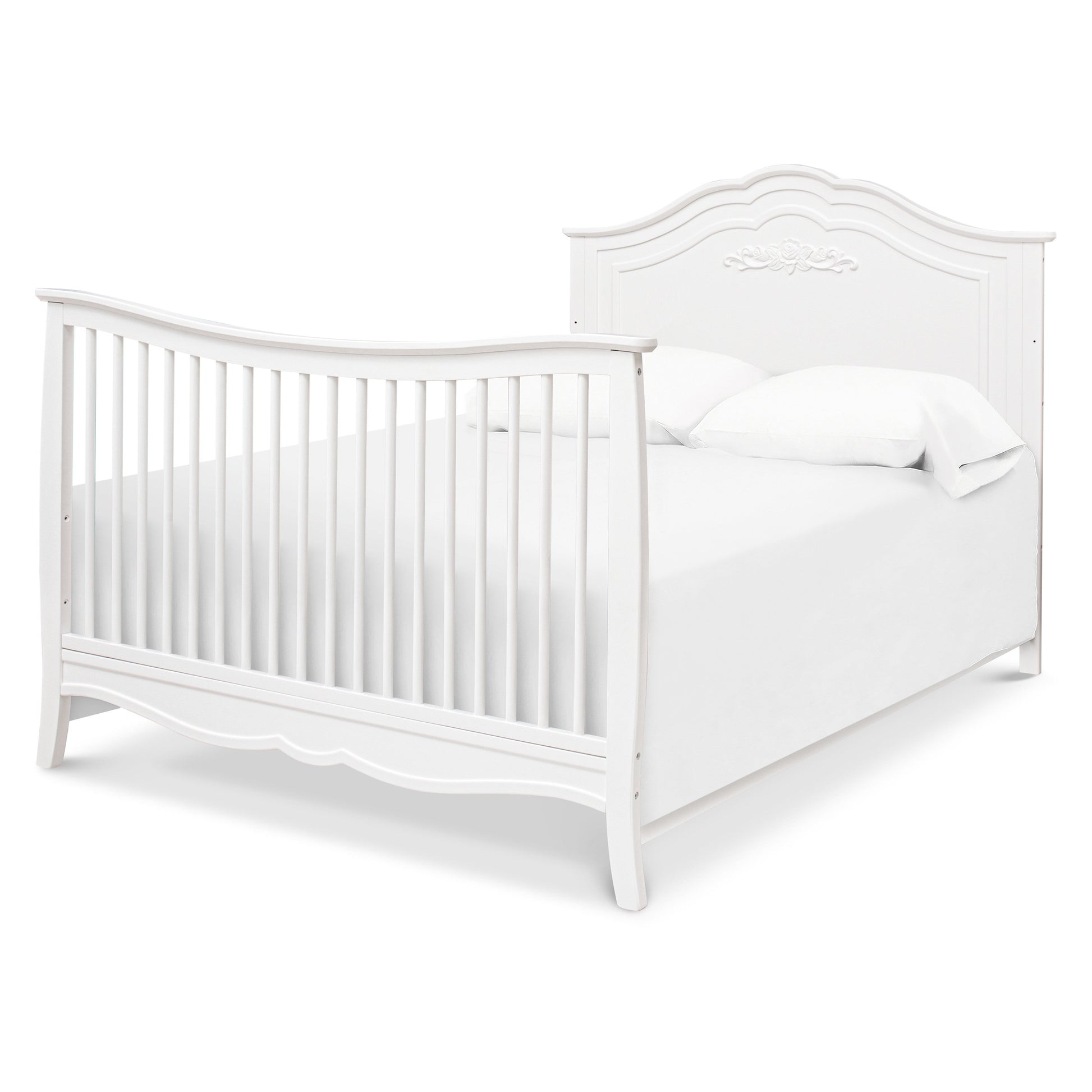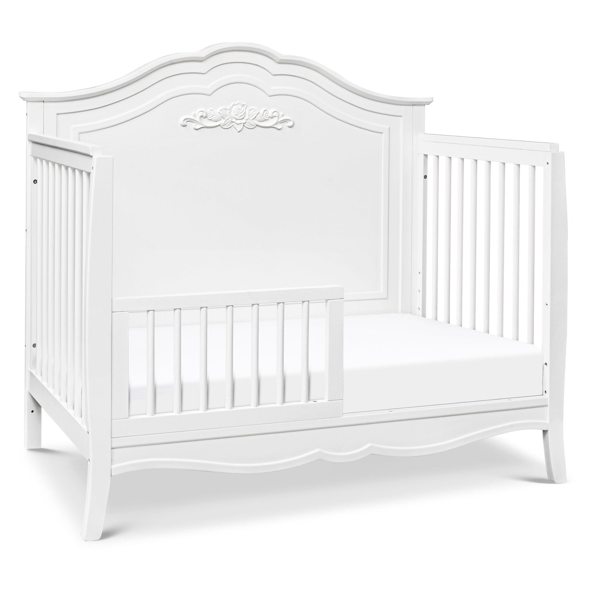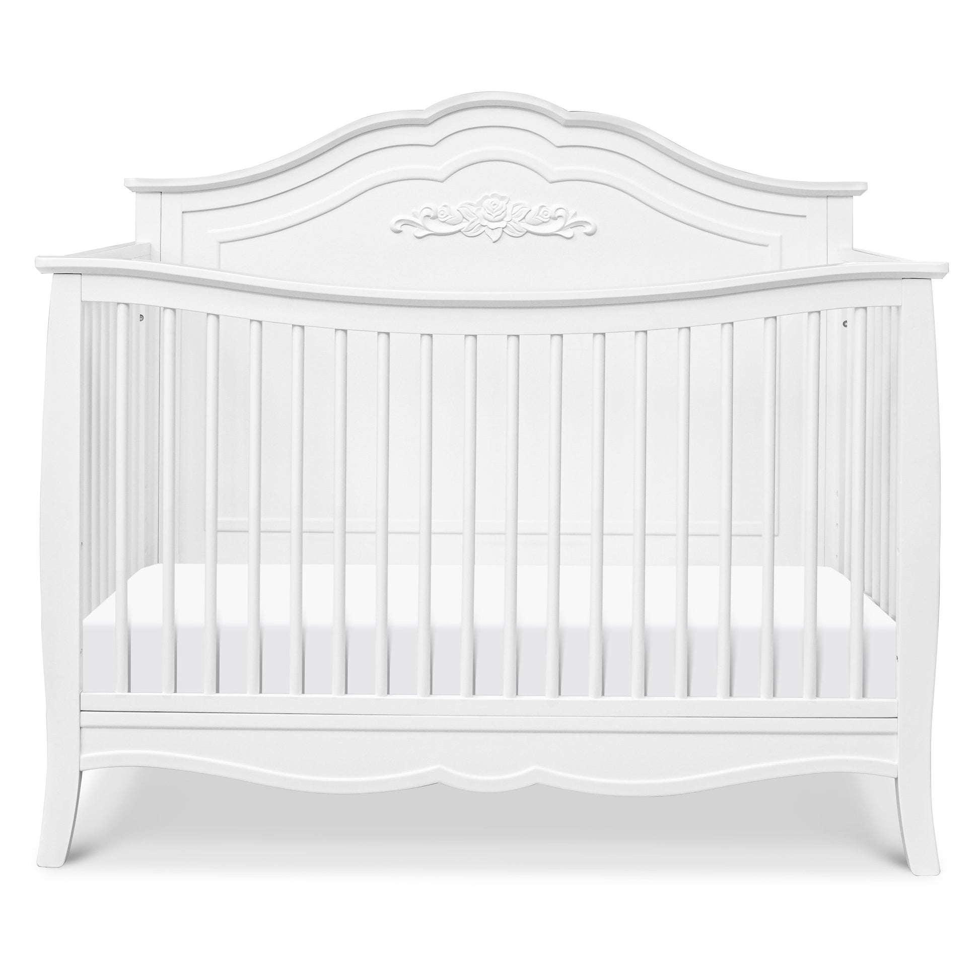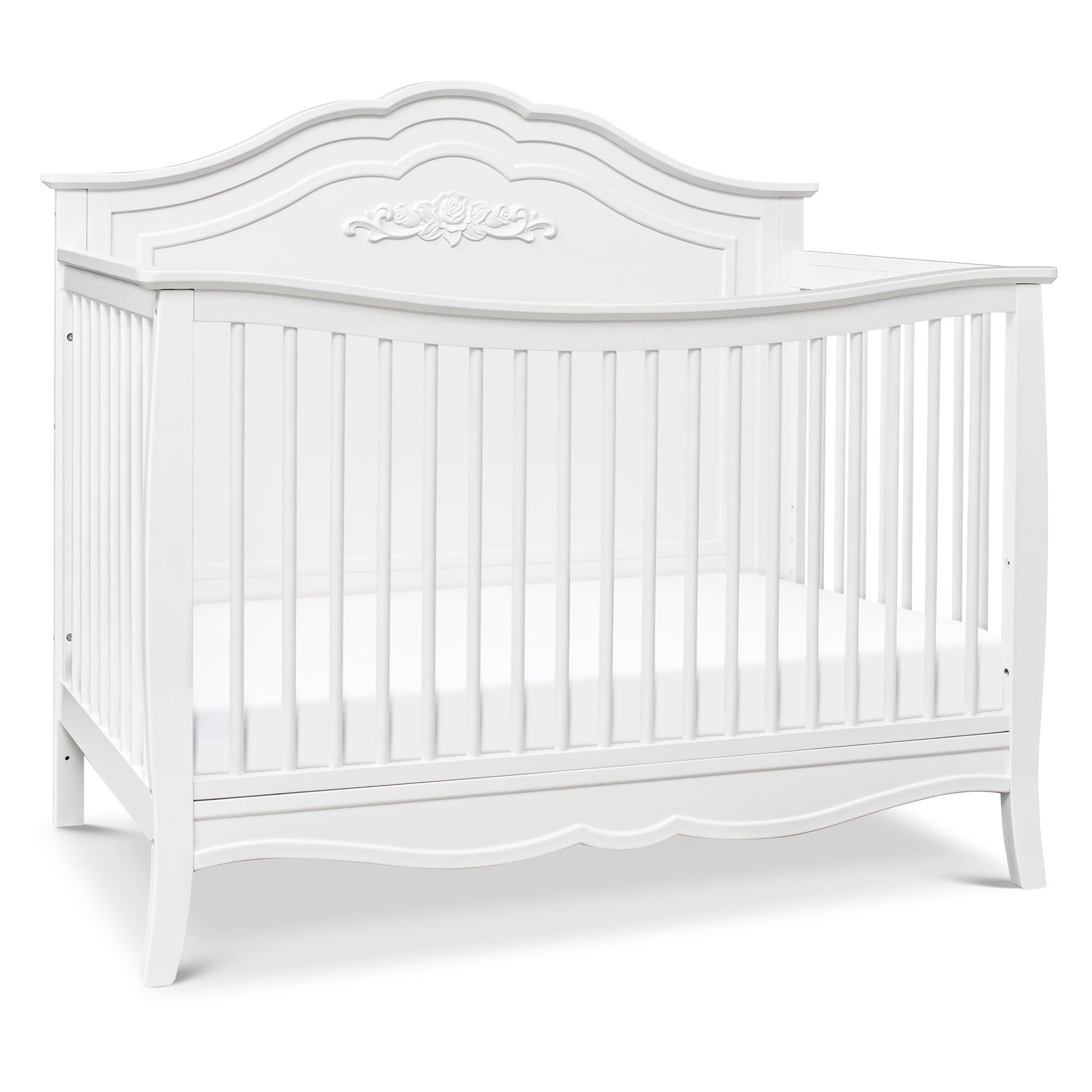 The Fiona 4-in-1 Convertible Crib is the perfect centerpiece for your princess’ dream nursery. The elegantly curved headboard, beautiful floral applique, and delicate spindles give this crib just the right amount of feminine touch. We’ve thoughtfully crafted this crib with your family in mind, using only high-quality, non-toxic materials so that you can rest easy knowing that your baby is safe in our hands and instead focus on enjoying your little bundle of joy! Complete the look with our DaVinci Kalani 3-Drawer and 6-Drawer Dressers.
