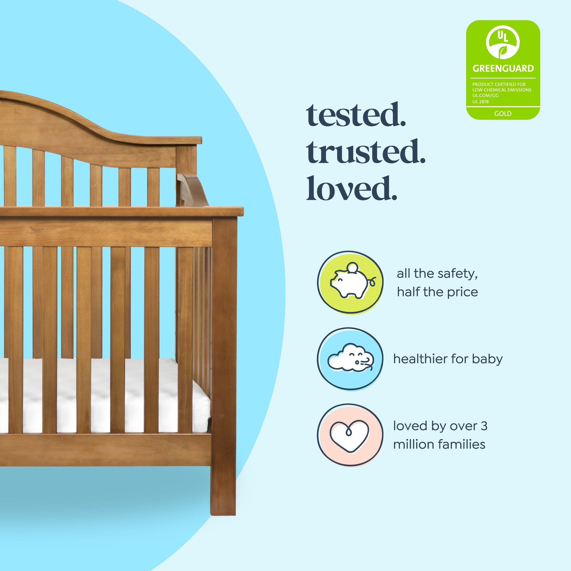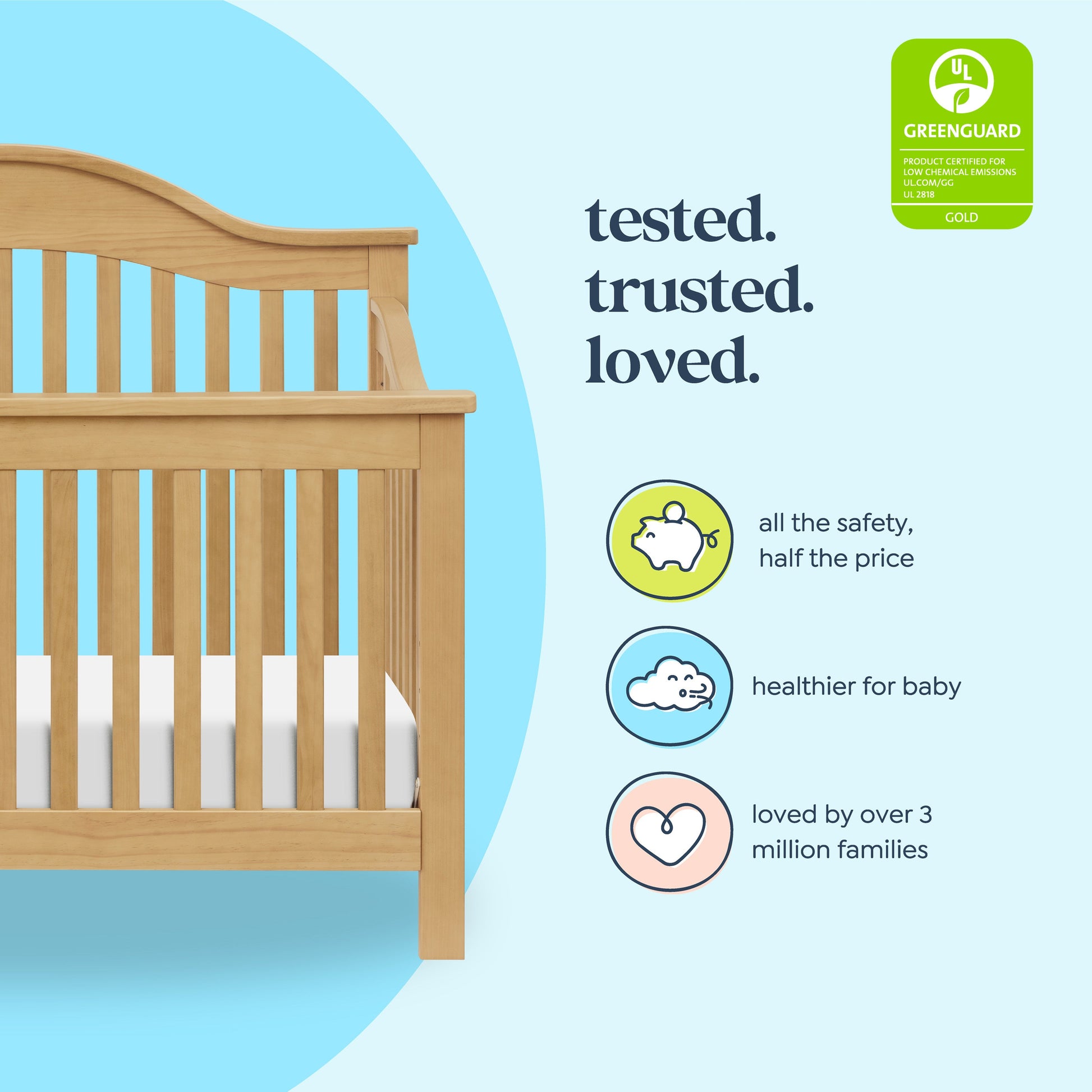Built to the highest standards of comfort and safety, our Jayden 4-in-1 Crib features an elegantly curved back with simple solid slats. GREENGUARD Gold Certified and constructed from 100% natural solid New Zealand pine wood, the Jayden Crib combines traditional appeal with timeless clean lines. As baby grows, this crib can be converted for use as a toddler bed, daybed and full-sized bed.