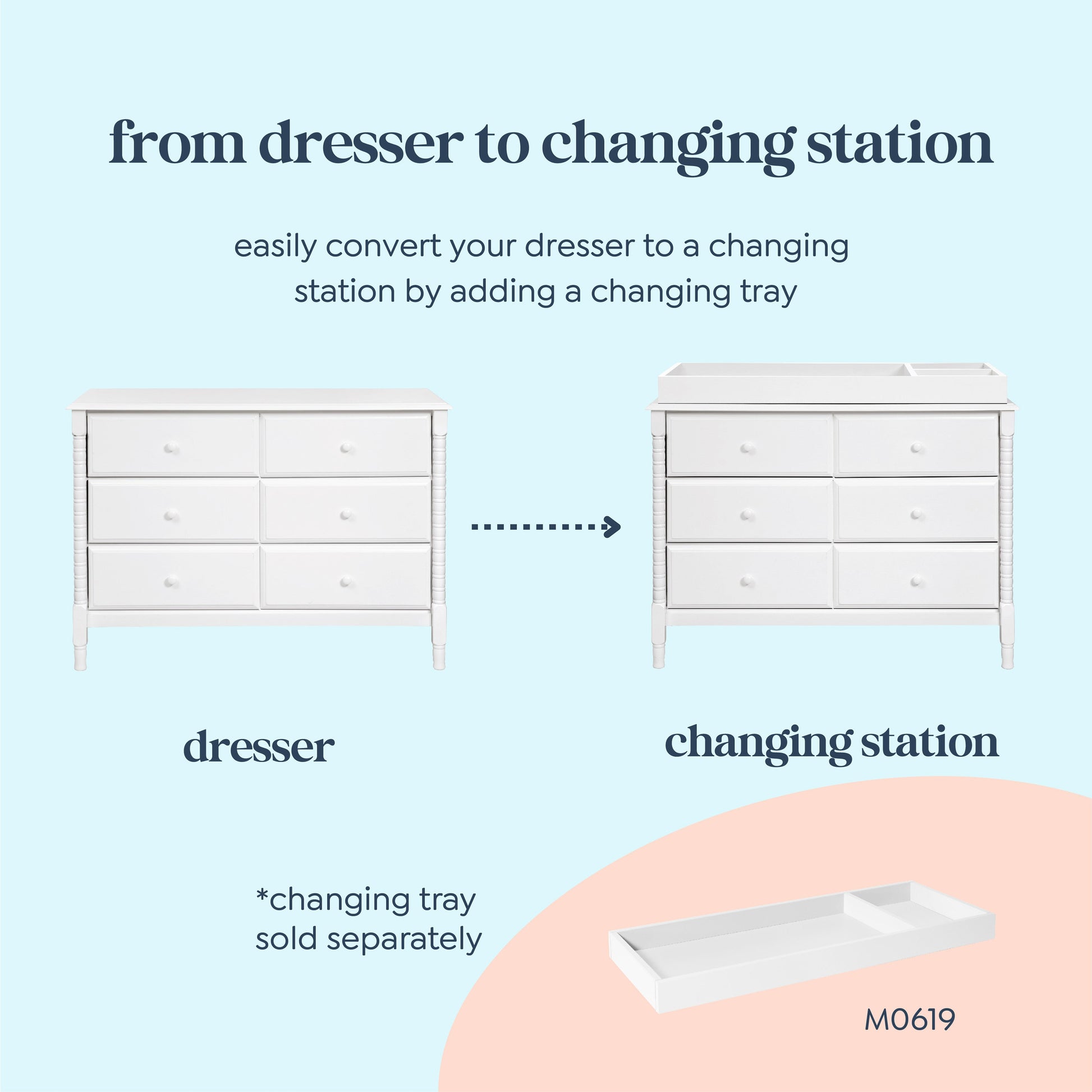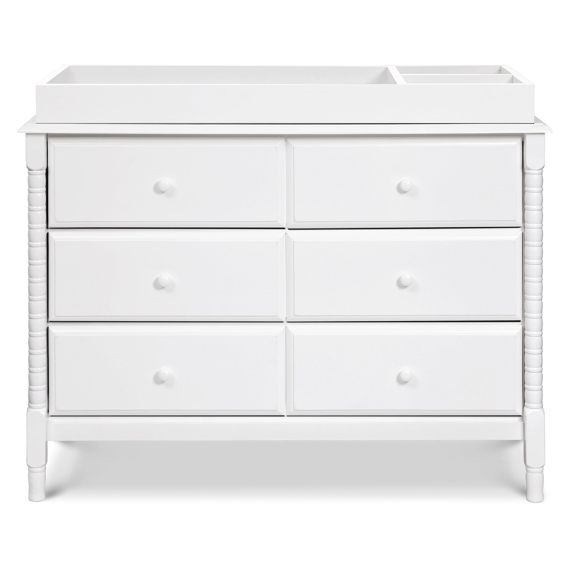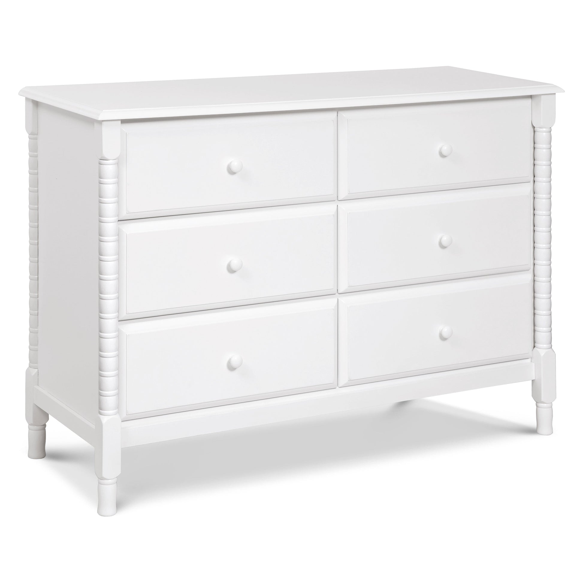 The newly designed Jenny Lind Spindle 6-Drawer Dresser is a timeless piece that complements the vintage charm of any Jenny Lind nursery or kids room. Its iconic wood spindle design gives this dresser an expressively sweet and elegant style. With 6 sturdy drawers, store all of baby's clothes and necessities within easy reach.
