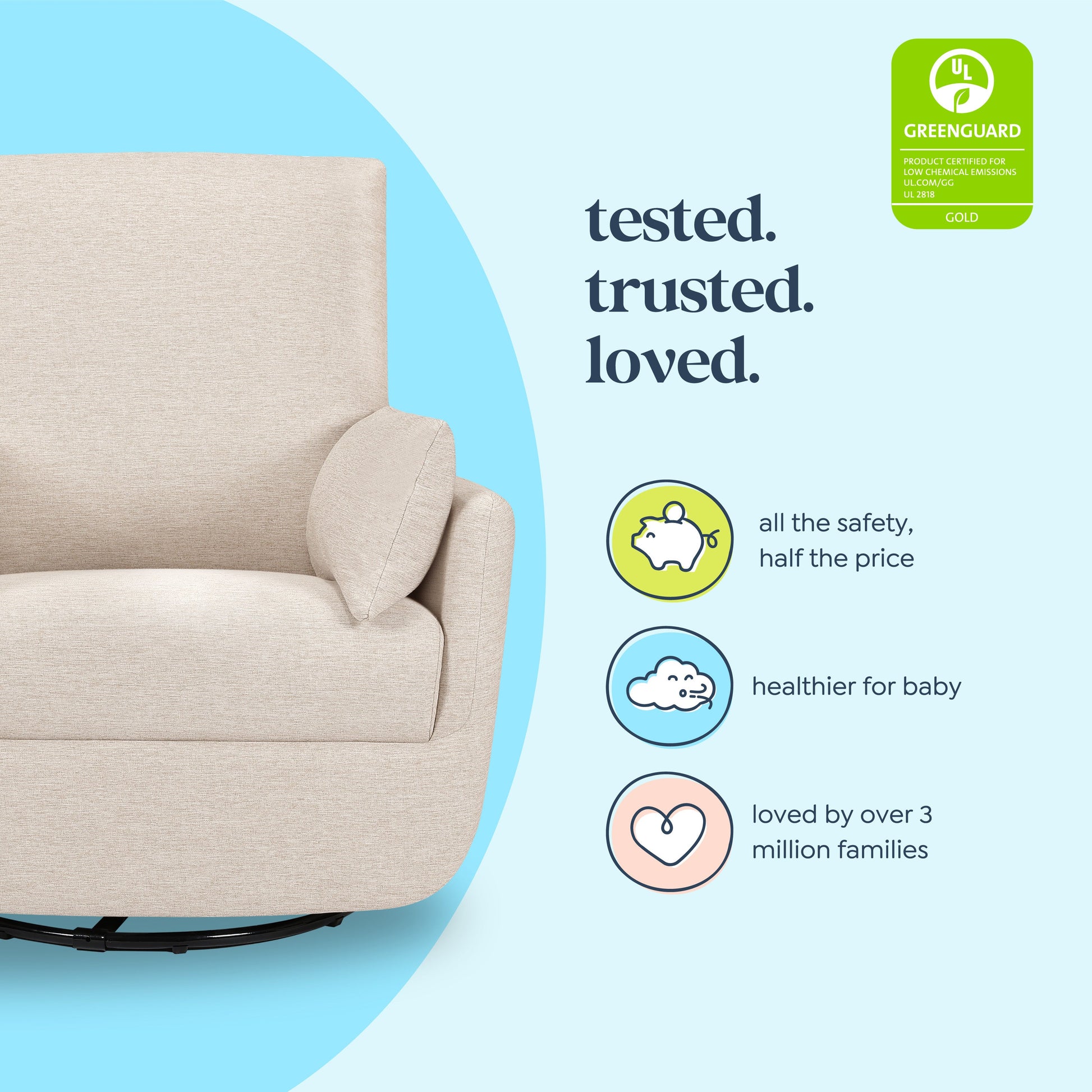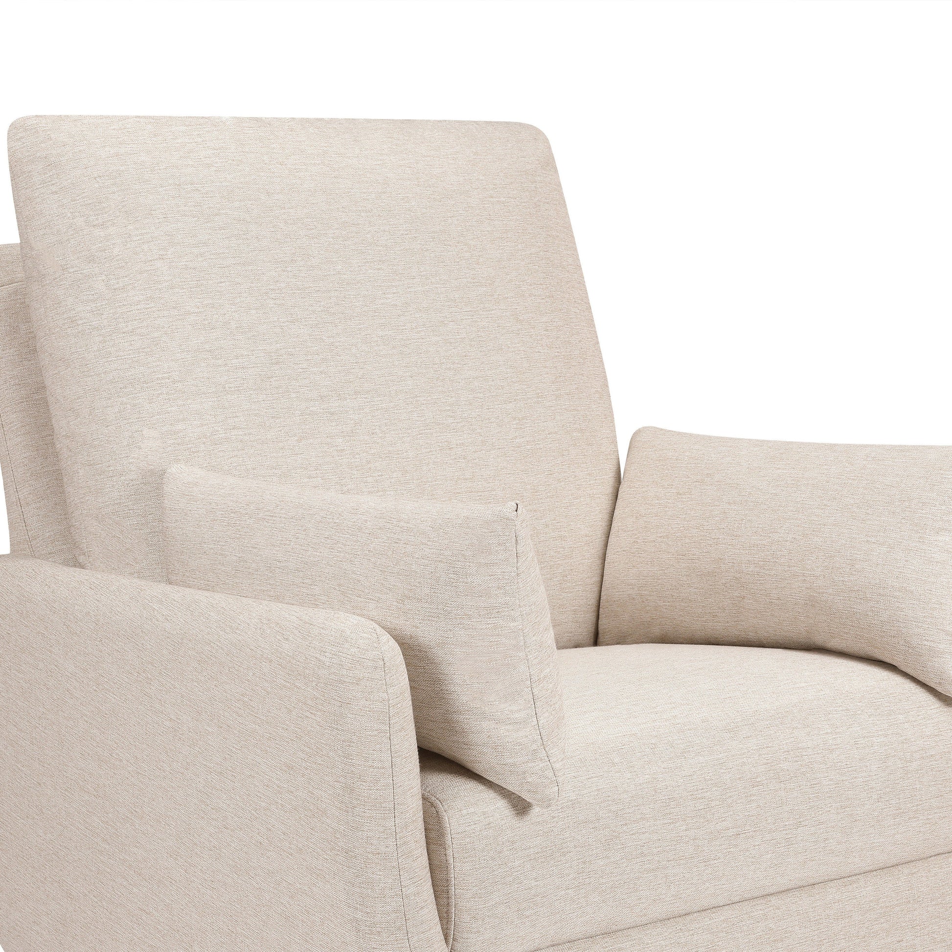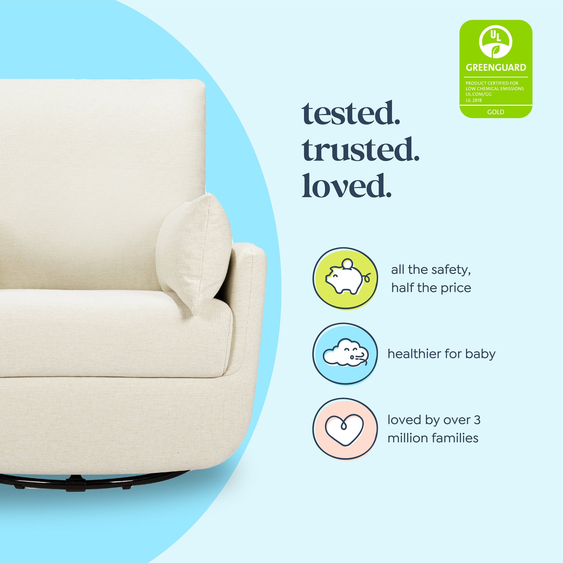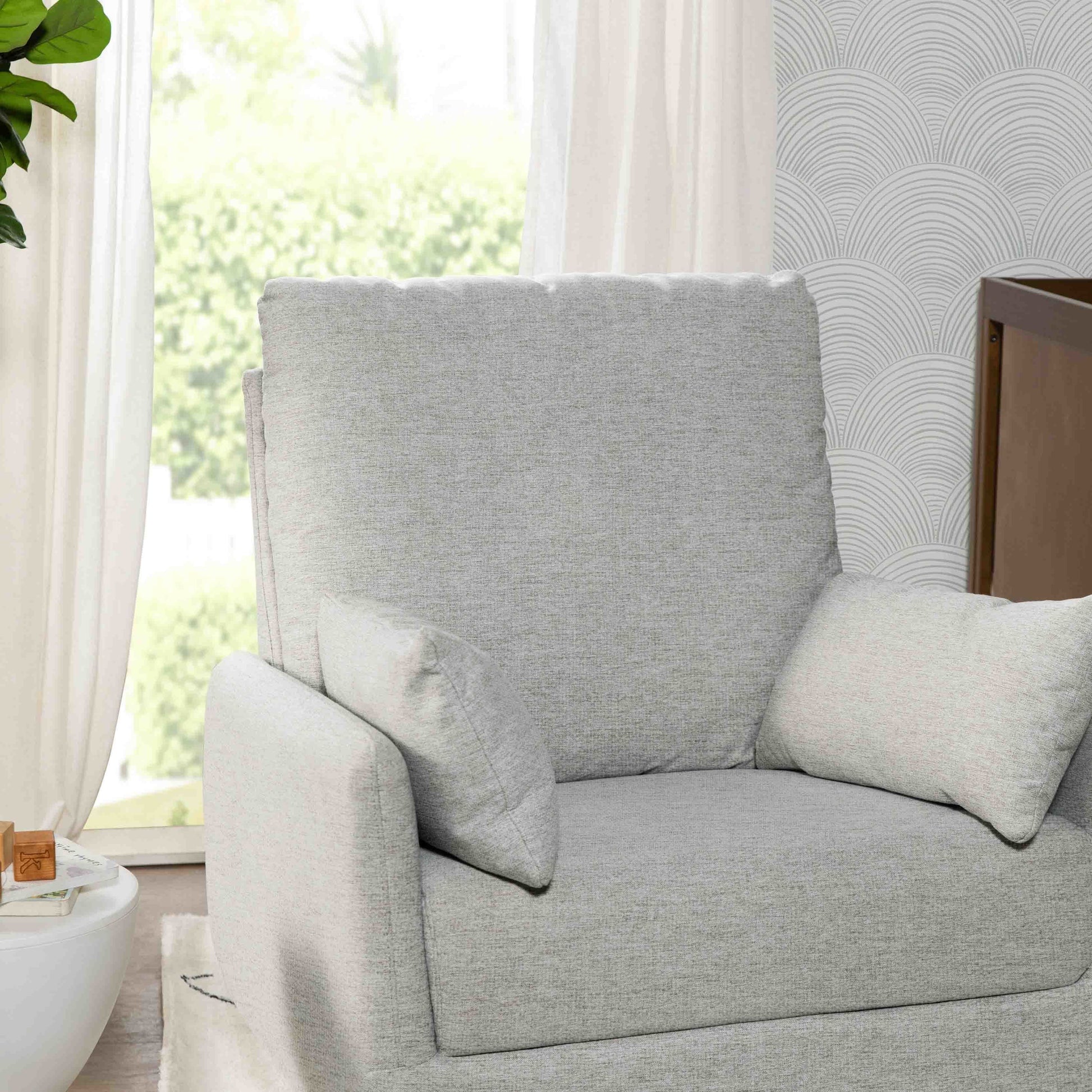 The Juno Swivel Glider is a modern unique U-shaped glider featuring cushions on each side to provide exceptional support and comfort while feeding, reading, or snuggling with your little one. Mom and dad can rest easy in this comfortable and durable glider that glides forwards and backwards as well as swivels. With its unique design, this glider adds a touch of playfulness to any nursery and the versatile design can easily transition to your home in the later years.