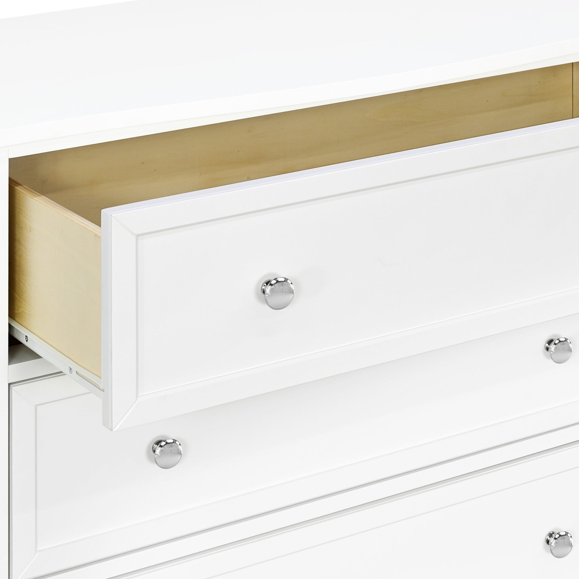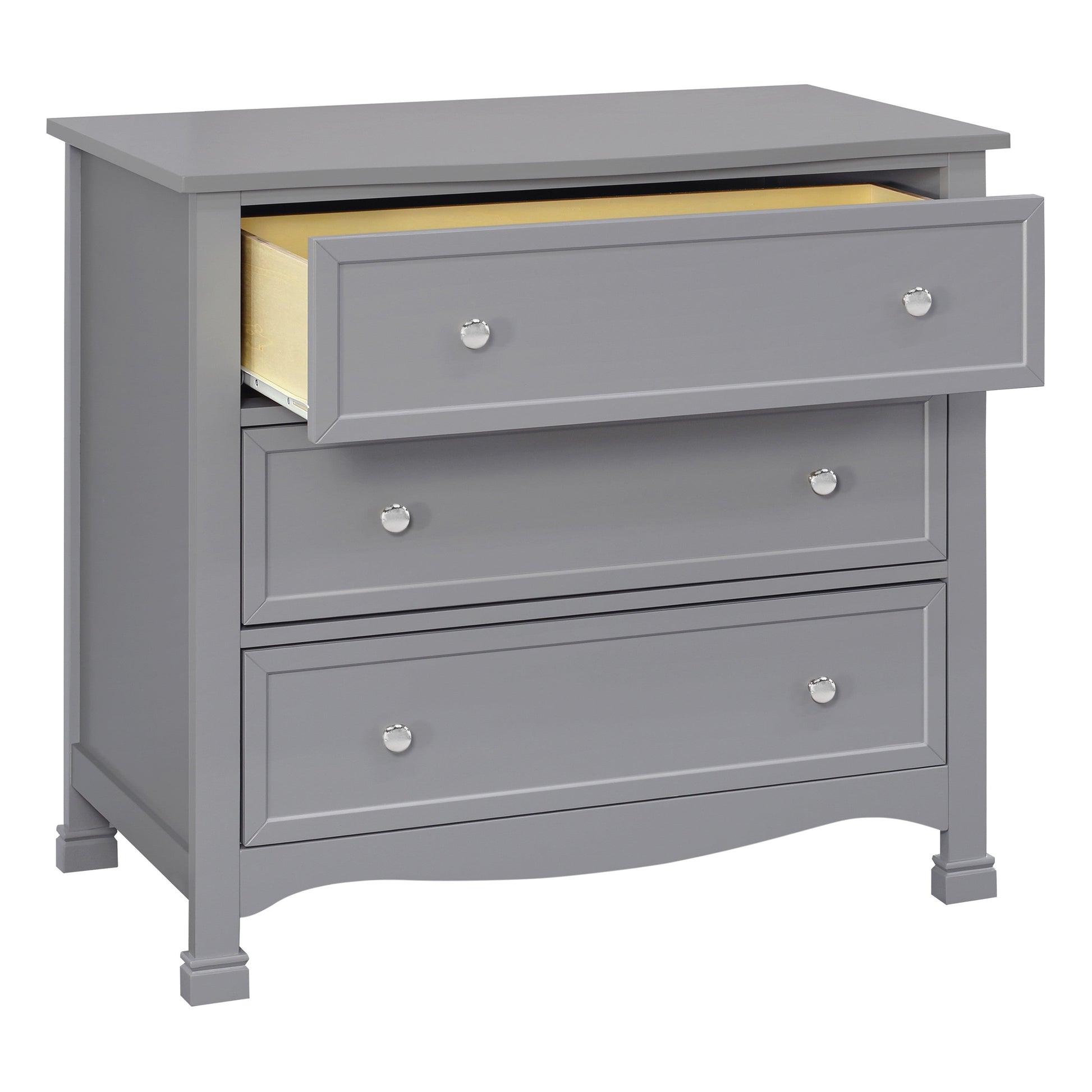 The Kalani 3 Drawer Dresser is the smart changing and storage solution for the classic Kalani collection. Three roomy drawers provide ample storage to simplify organization while thoughtful design ensures a style fit for any nursery. The dresser is detailed with recessed front drawer panels, a gently curved apron front and curved top sides.