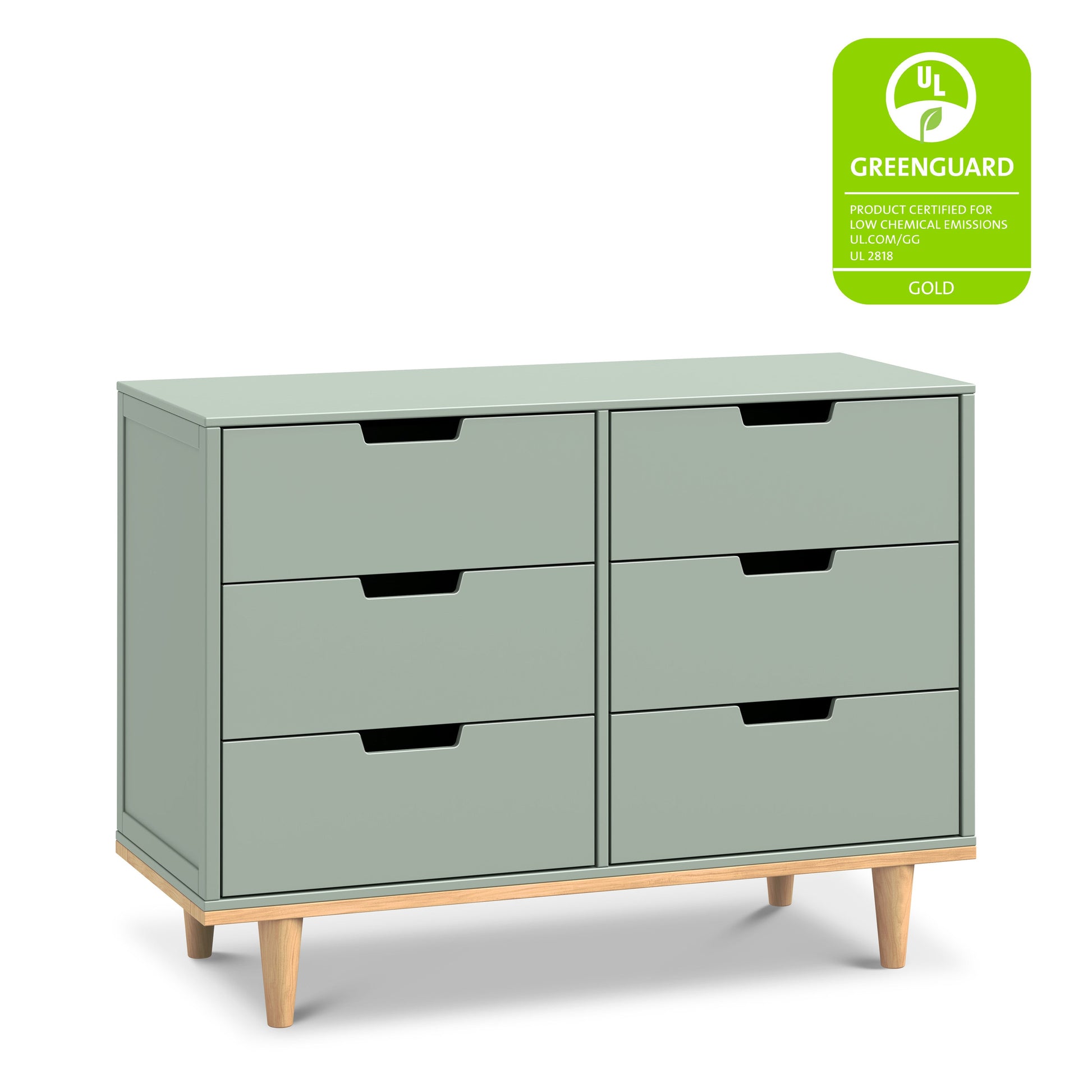 The Marley 6-Drawer Dresser features six spacious drawers with open finger pulls and a versatile, modern look. Coordinates with the Marley 3-in-1 Crib and Marley 3-Drawer Dresser.
