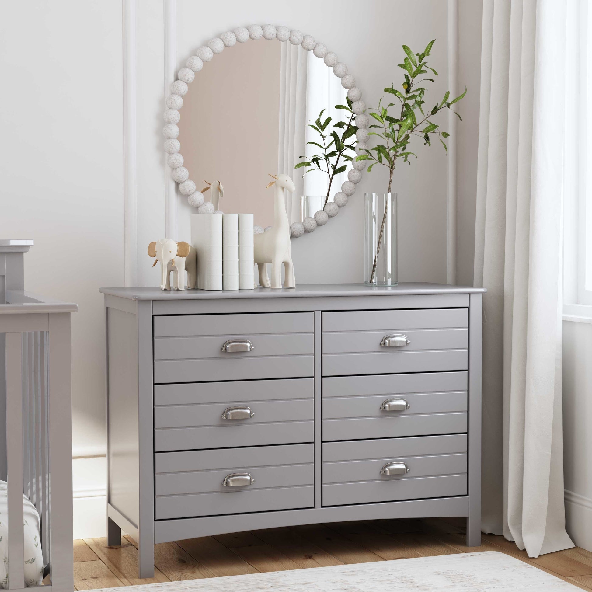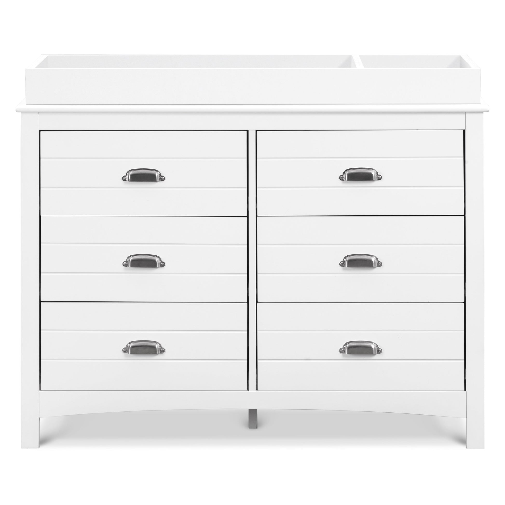 The by DaVinci Nolan 6-Drawer Double Dresser is a must-have storage solution that combines functionality with classic farmhouse styling. The Nolan dresser highlights contemporary shiplap style drawer fronts with metal cup pulls and offers spacious drawers to fit all the necessities for baby.