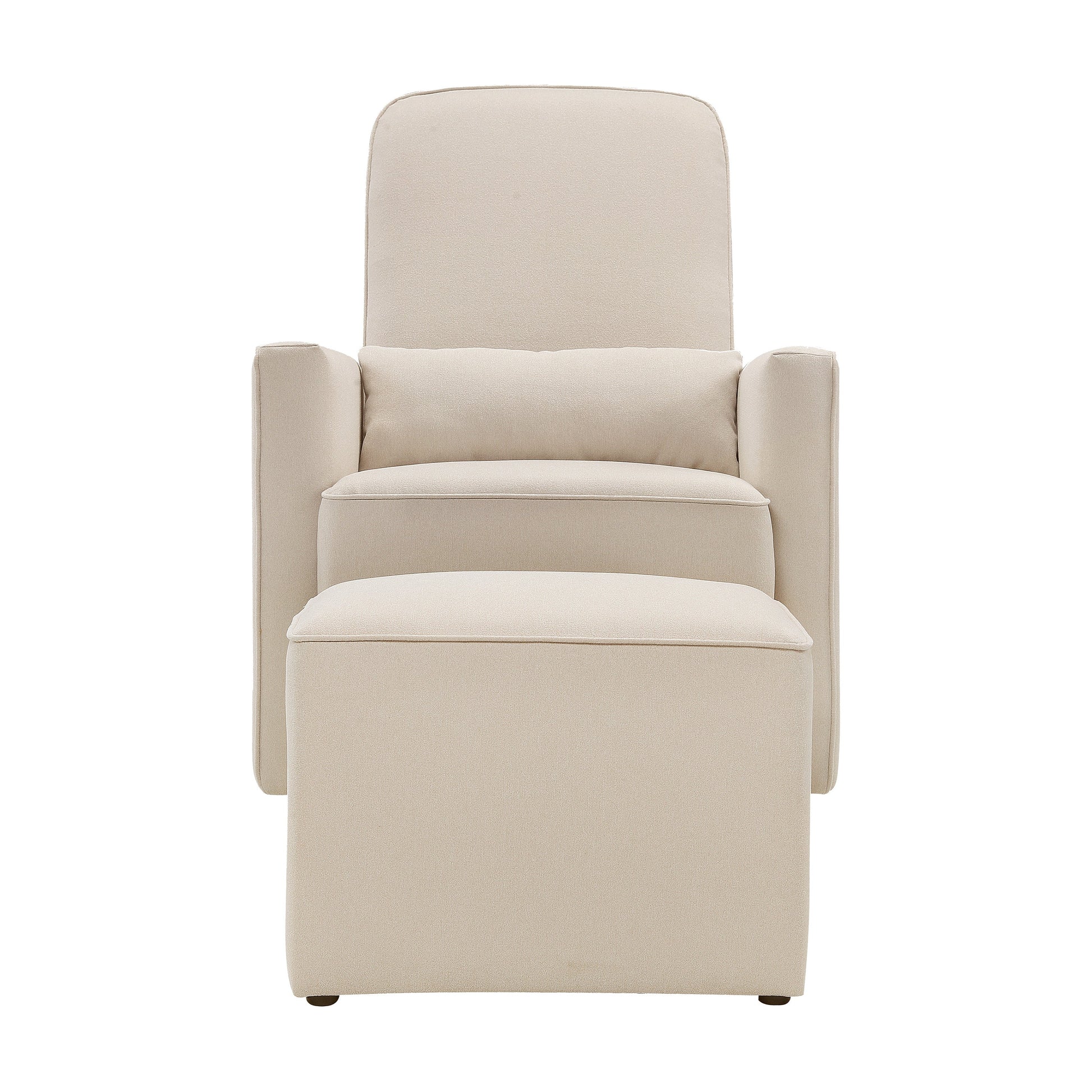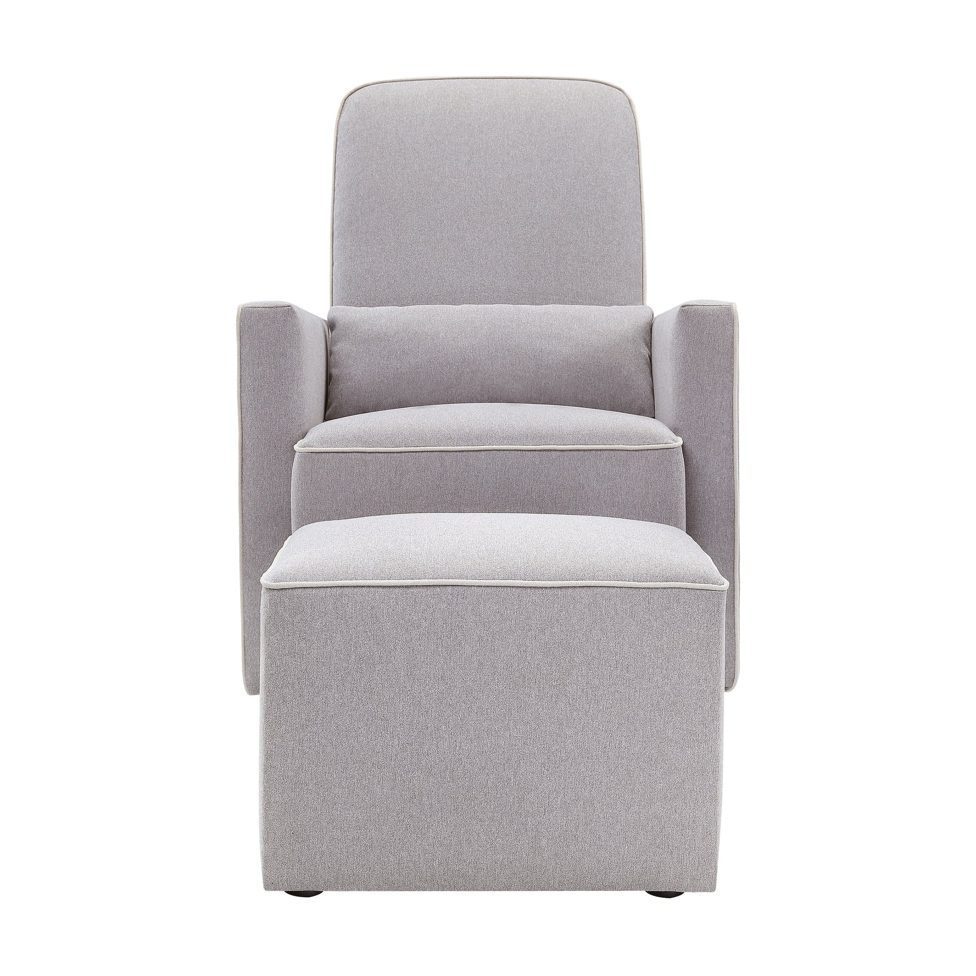 The DaVinci Olive Glider with Ottoman has been thoughtfully designed to meet mom’s and baby’s feeding time needs then transition to your home in the later years. Mom can rest easy in this soft and durable 100% polyester glider that glides forwards and backwards as well as swivels. Bonus upholstered ottoman included to rest those tired feet. Designed with a high back for head and neck support. A matching lumbar pillow is included to offer even more back support when needed.