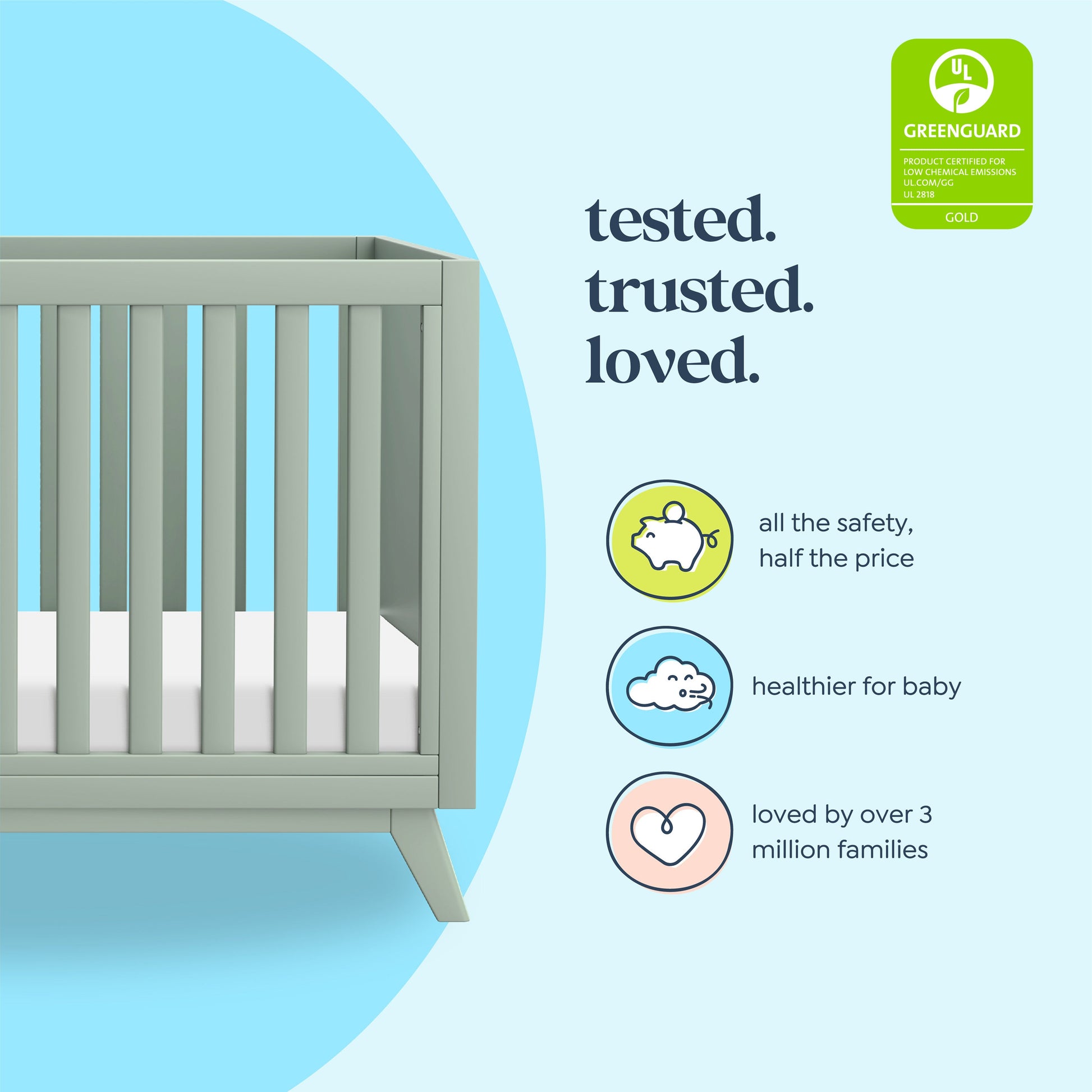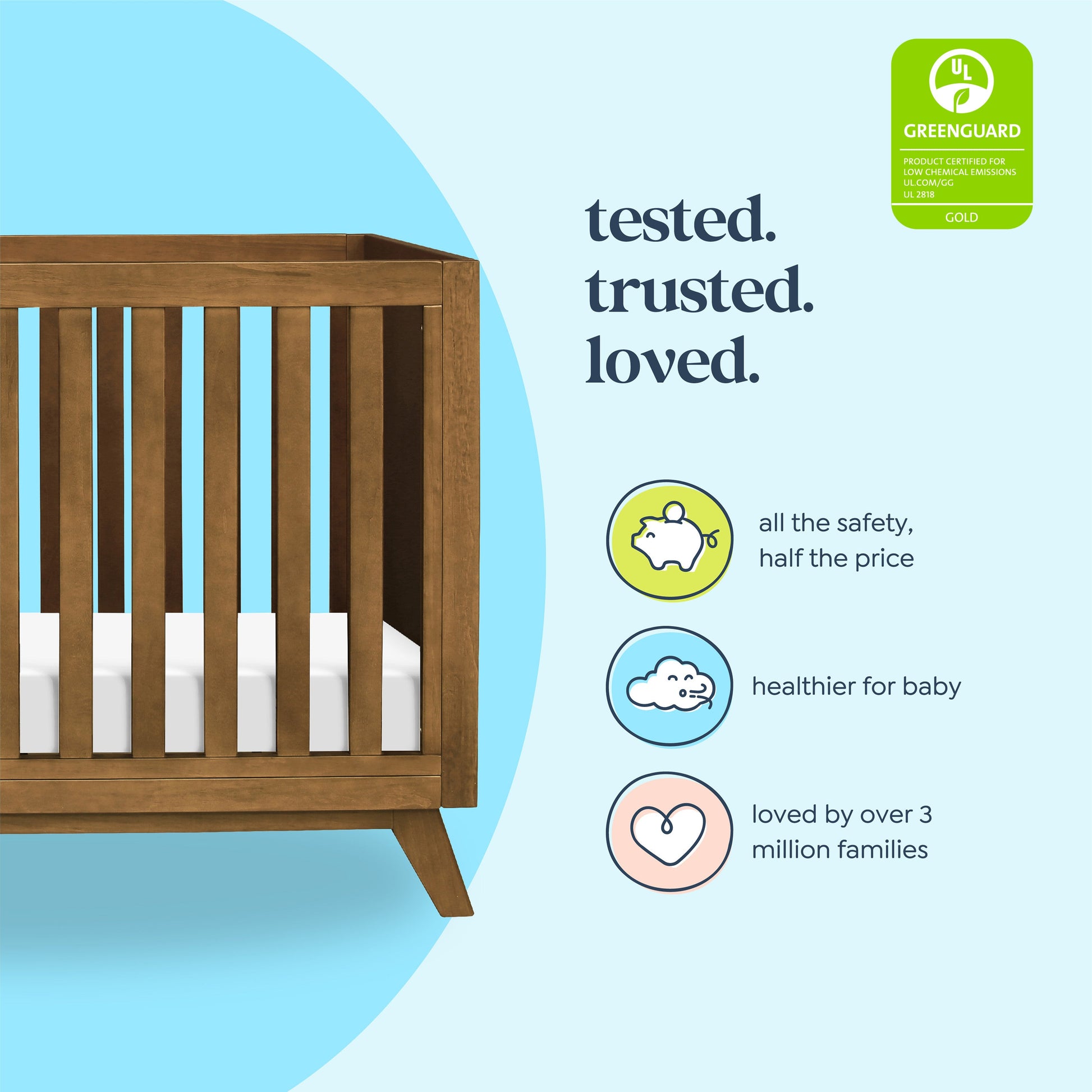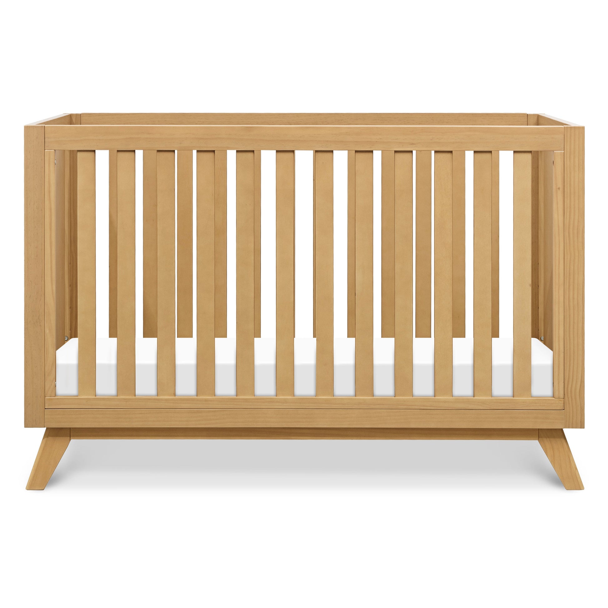 The Otto 3-in-1 Convertible Crib captures the timeless mid-century modern design with its clean lines, flared legs, and solid wooden slats. Built to seamlessly transition from newborn to toddler, the crib has four different mattress heights and easily converts to a toddler bed and daybed. Coordinates with the Otto Convertible Changing Table and Cubby Bookcase for a stylish and modern nursery.