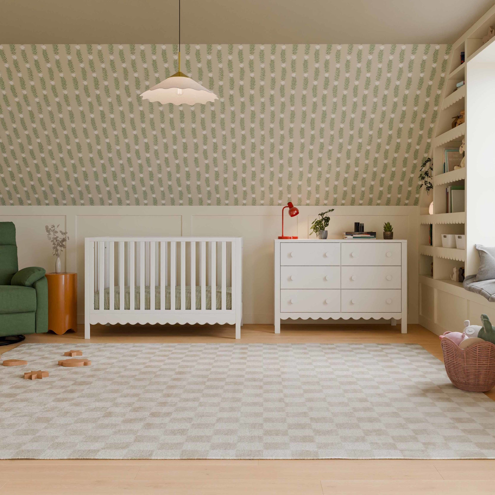 From its charming scallop detailing to its playful colors, the Sammy Scallop 4-in-1 Convertible Crib easily transitions with your little one from baby to teen. Paired with its matching 6-drawer dresser and bookcase, the Sammy Scallop Collection ensures that every moment with your little one is filled with style and joy.