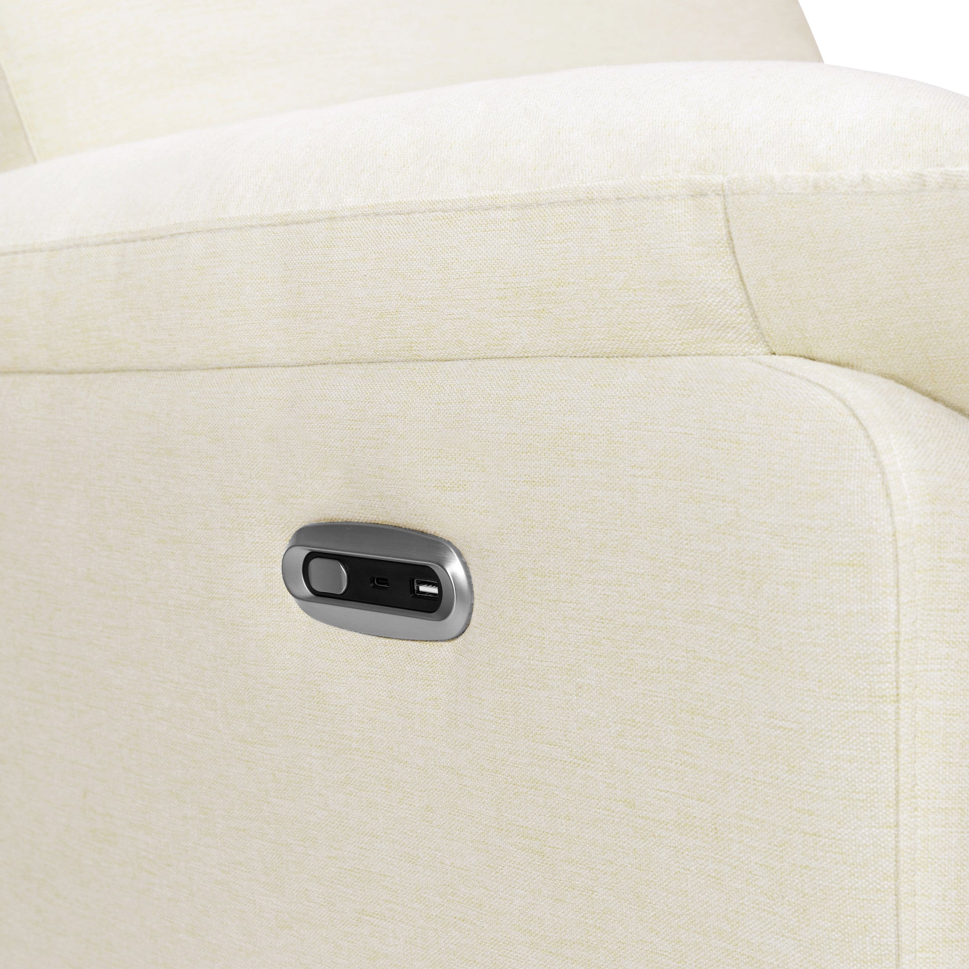 The Suzy Electronic Recliner and Swivel Glider has been thoughtfully crafted with cushioned armrests to provide optimal support and comfort to meet parent’s and baby’s feeding time needs. Moms and dads can rest easy in this comfortable, durable chair that swivels and has an automatic recline button that ensures a seamless transition from sitting to a peaceful reclined resting position. Designed with a high pillowback for head and neck support and a USB port for convenience, you'll find yourself wanting to drift off into a peaceful slumber. This modern and versatile design can easily transition to your home in the later years.